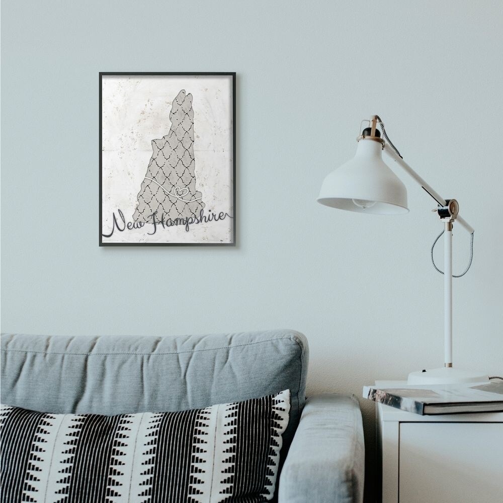 Stupell Industries New Hampshire Patterned Grey US State Design Black Framed Wall Art, Design By Artist Ziwei Li