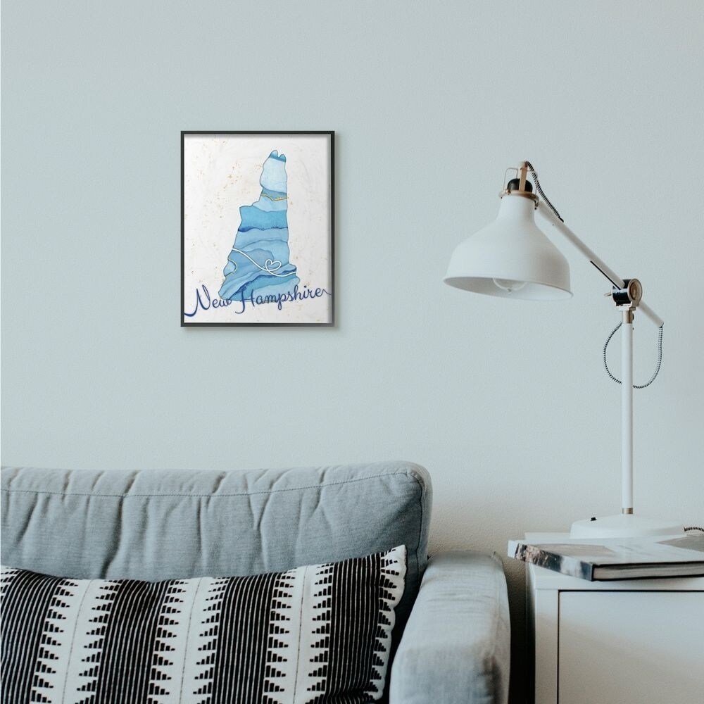 Stupell Industries New Hampshire Agate Blue US State Design Black Framed Wall Art, Design By Artist Ziwei Li