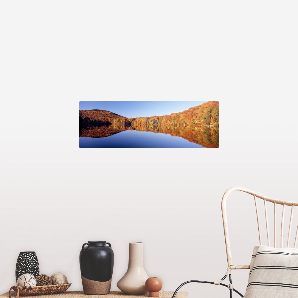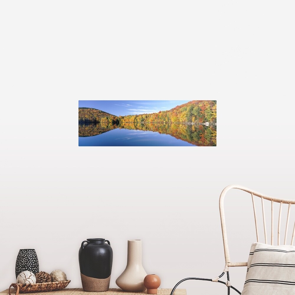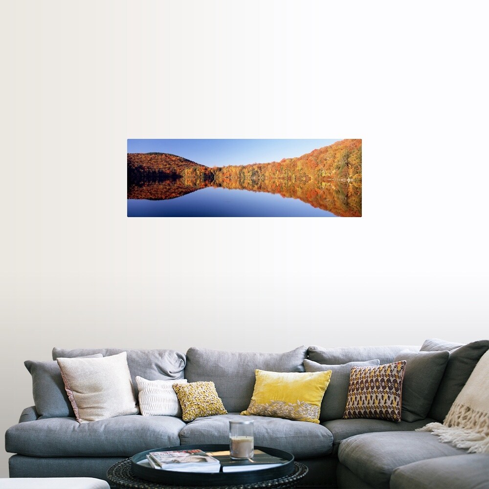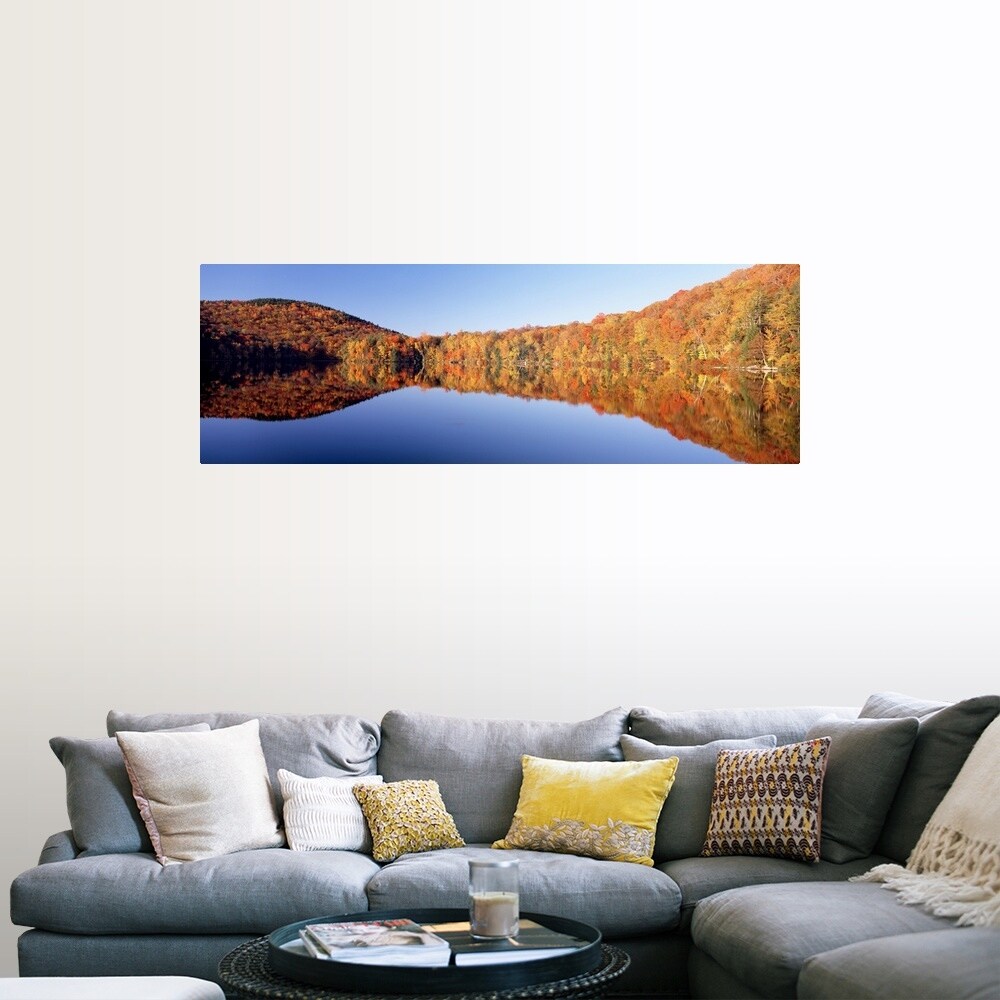 Easy Art Prints Panoramic Image 'Fall colors, New England lake, Goshen, Hampshire County, Massachusetts' Canvas Art