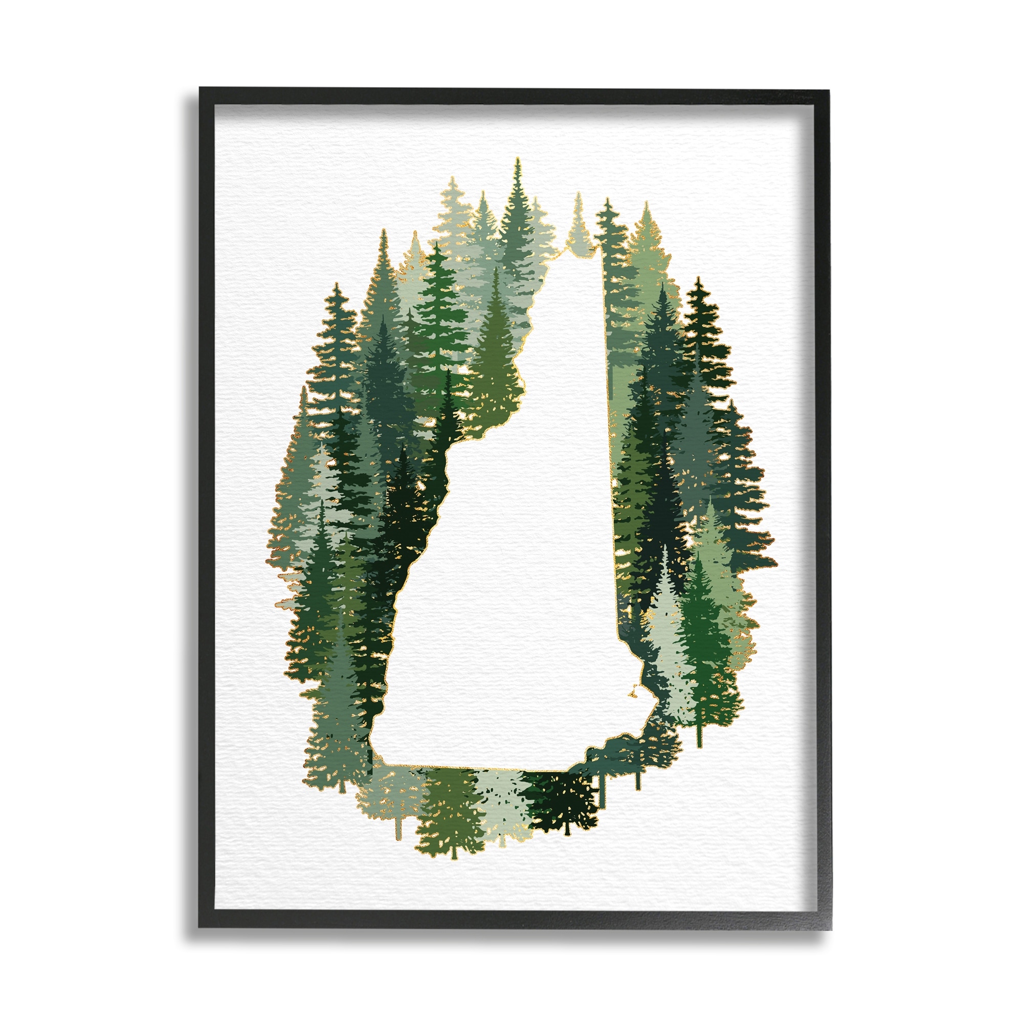 Stupell Industries New Hampshire State Outline Green Pine Tree Forest Framed Wall Art