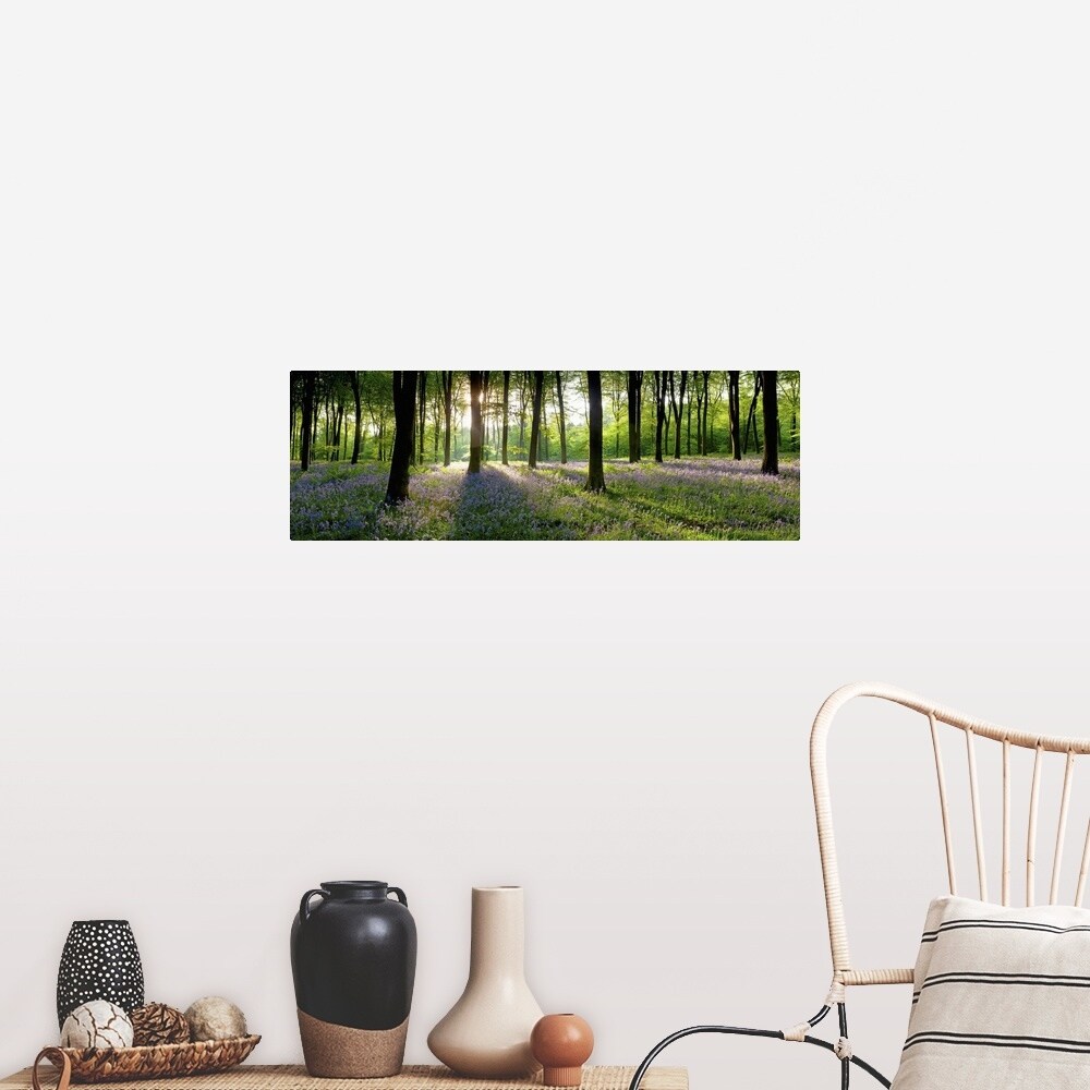 Easy Art Prints Panoramic Images's 'Bluebells in a forest, Micheldever Wood, Hampshire, England' Premium Canvas Art