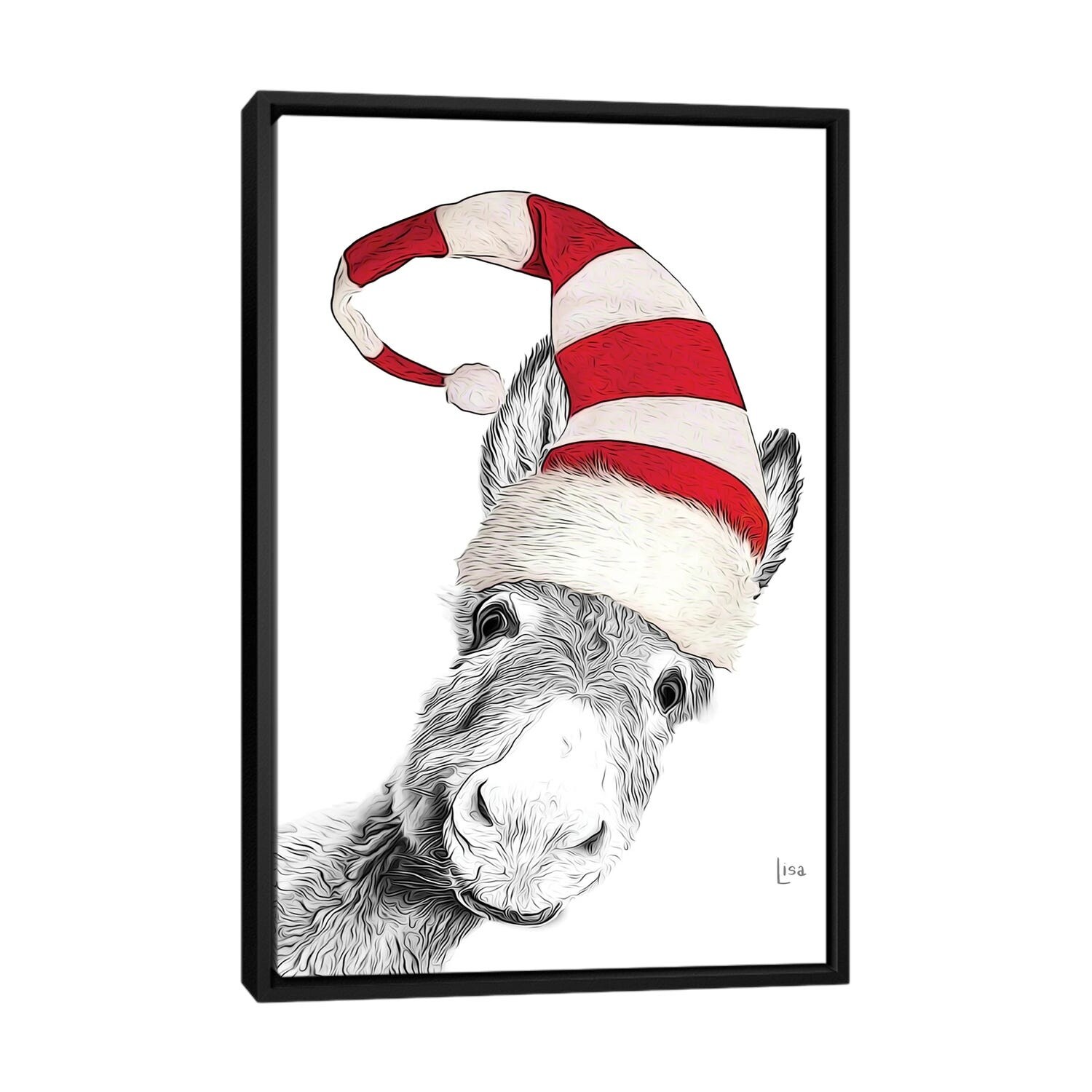 iCanvas "Christmas Donkey With Hat" by Printable Lisa's Pets Framed