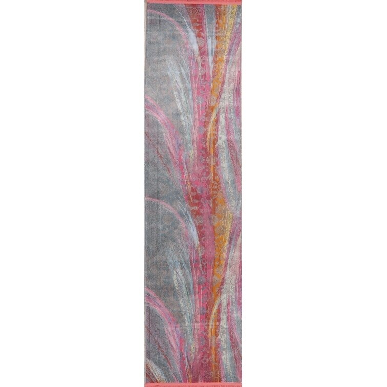 Abstract Multi-Color Vintage Style Distressed Heat-Set Area Rugs