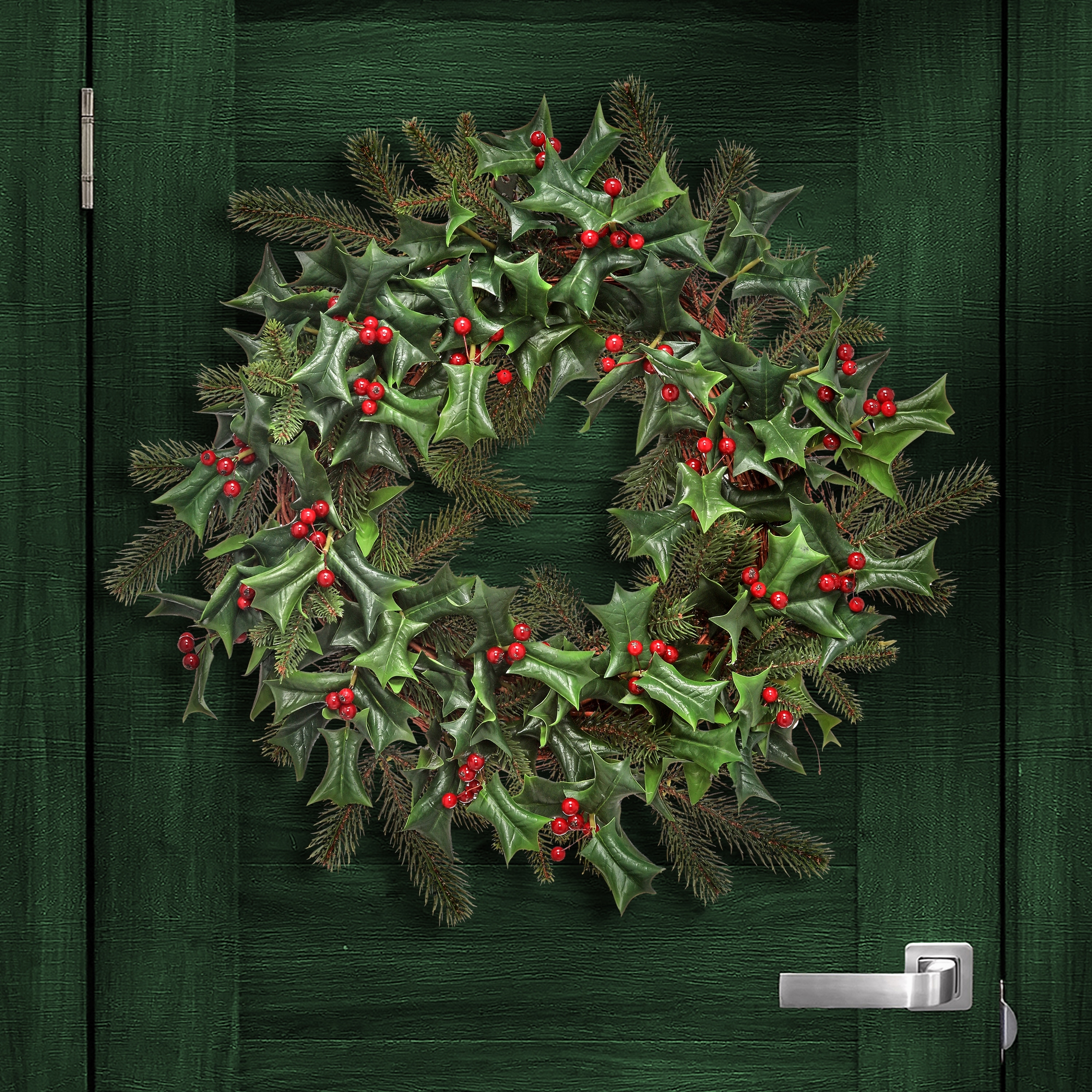 21" Deluxe Holly With Berries And Pine Wreath - Green Red