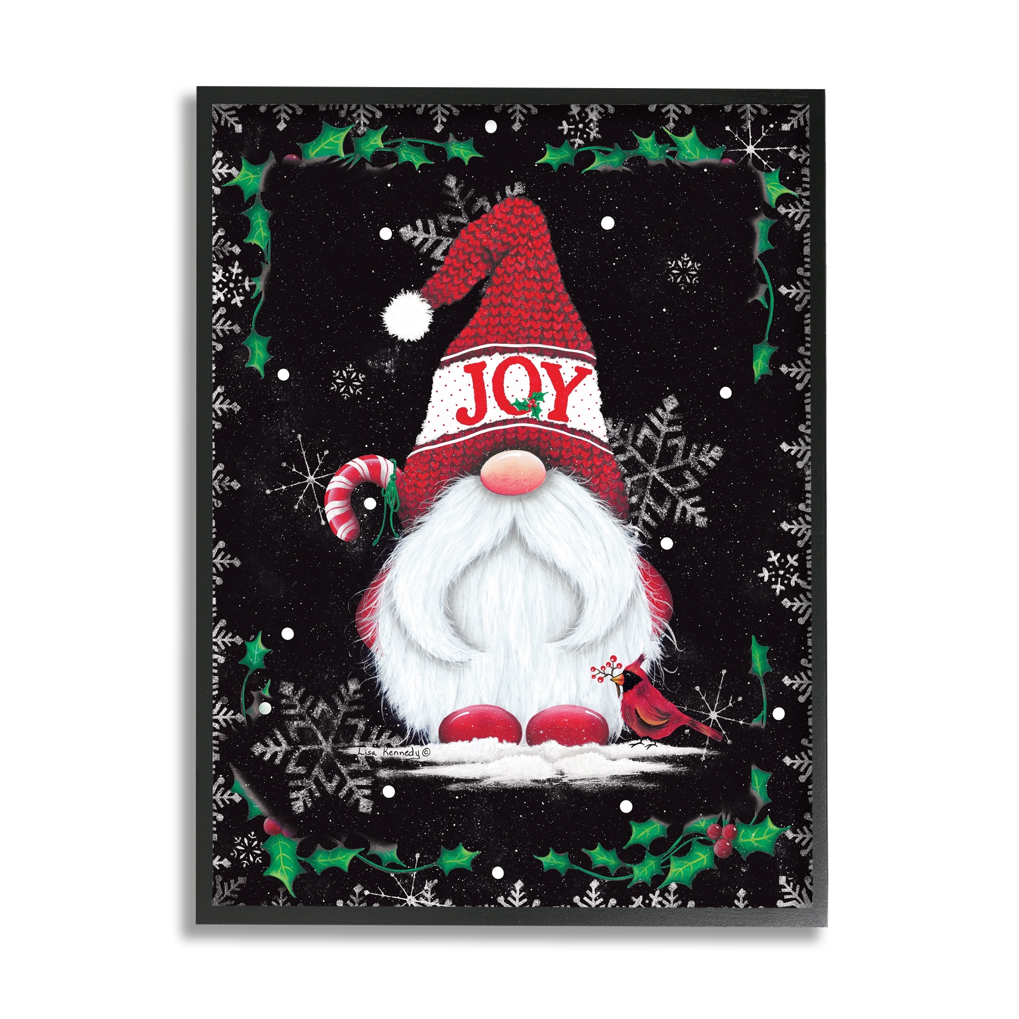 Stupell Industries Joyful Red Gnome & Cardinal Holly Botanical Border Framed Wall Art