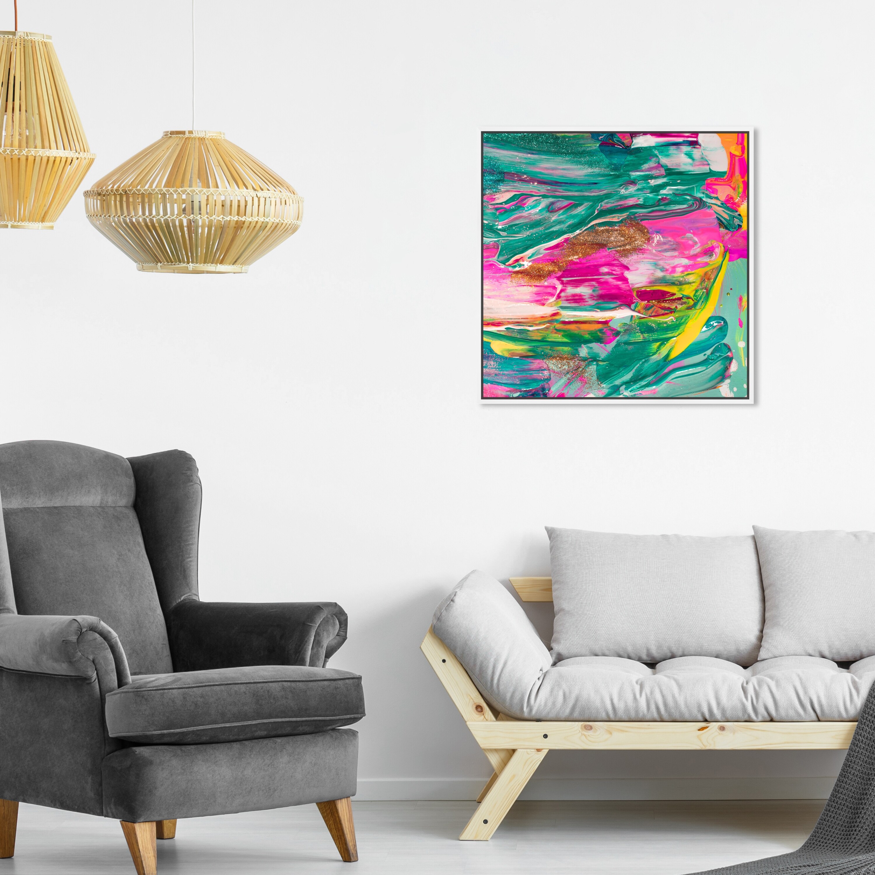 Oliver Gal 'Modern Holly' Abstract Wall Art Framed Canvas Print Textures - Green, Pink
