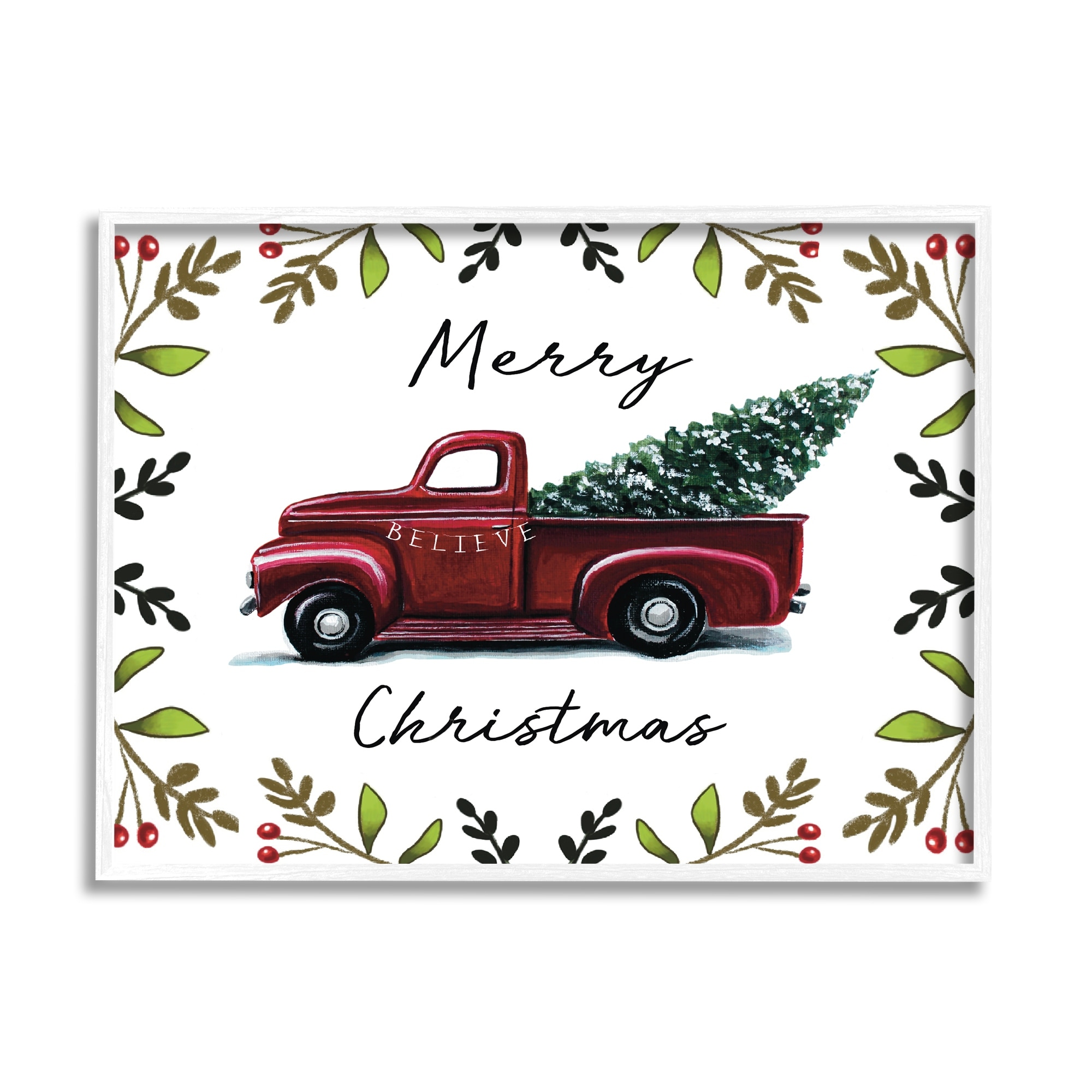 Stupell Merry Christmas Red Holly Believe Farm Truck Framed Wall Art