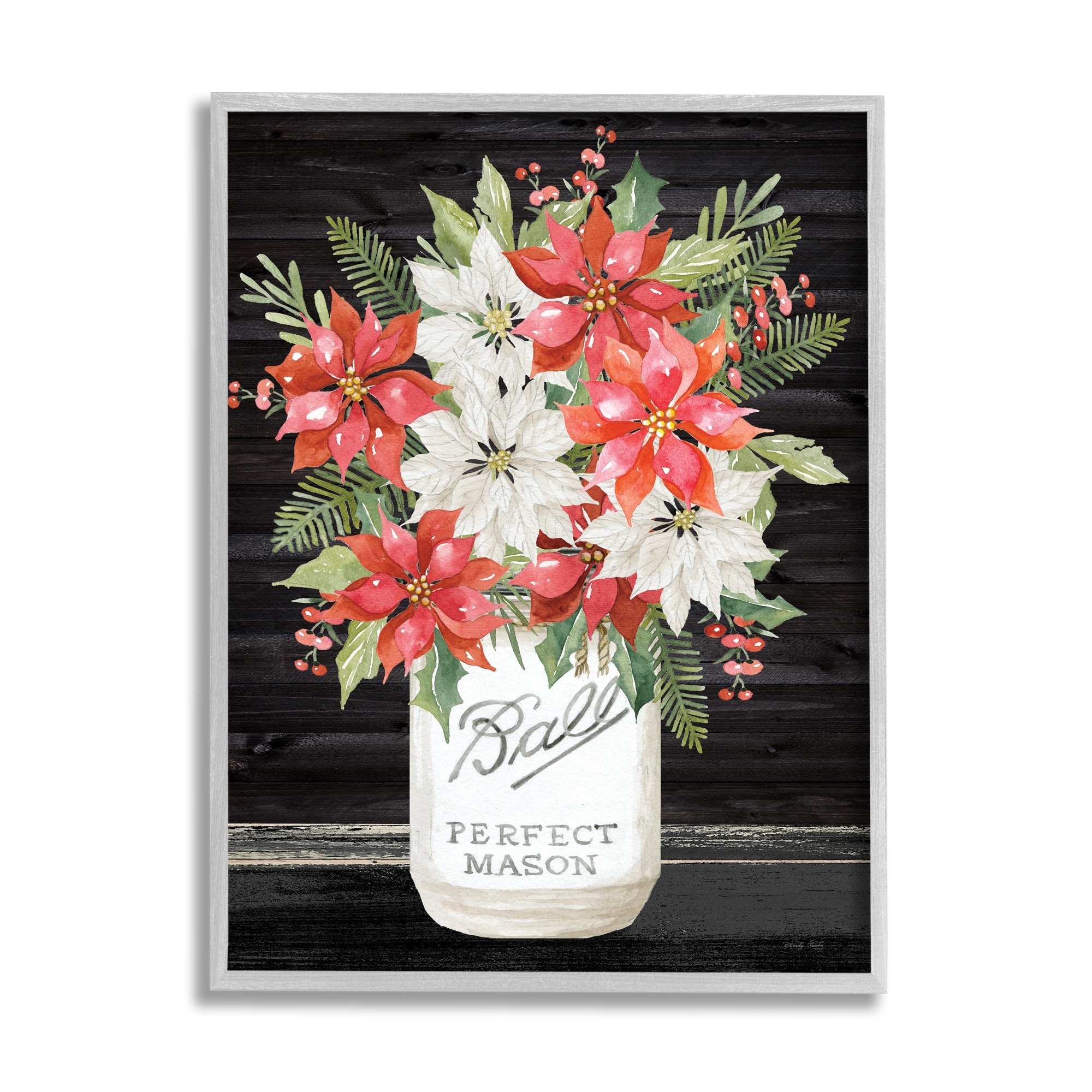 Stupell Mixed Holly Poinsettia Flower Bouquet Country Jar Framed Wall Art - Red