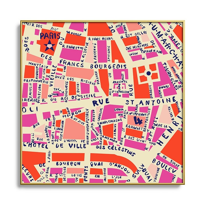 Holli Zollinger Paris Map Pink Made to Order Metal Framed Art Print