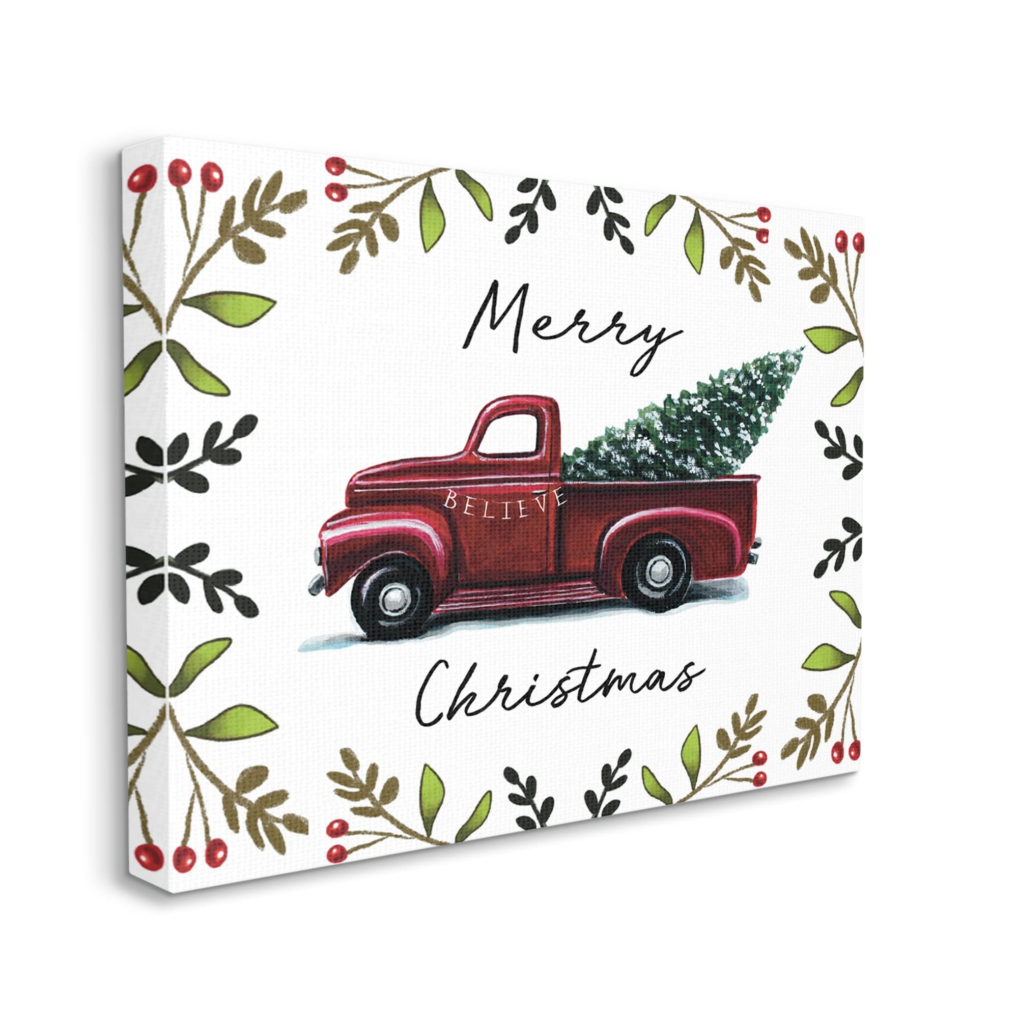 Stupell Industries Merry Christmas Red Holly Believe Farm Truck Canvas Wall Art