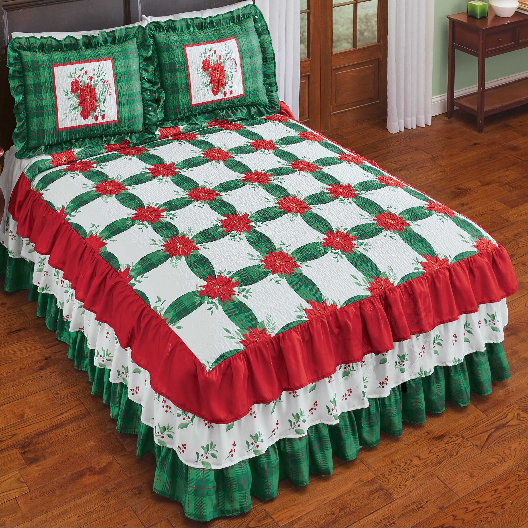 Poinsettia Holly and Green Plaid Lattice Bedspread