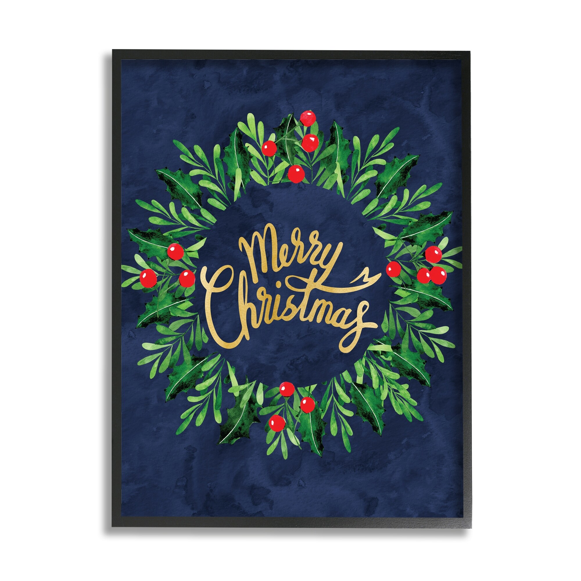 Stupell Industries Playful Red Holly Holiday Wreath Festive Merry Christmas Framed Wall Art - Blue