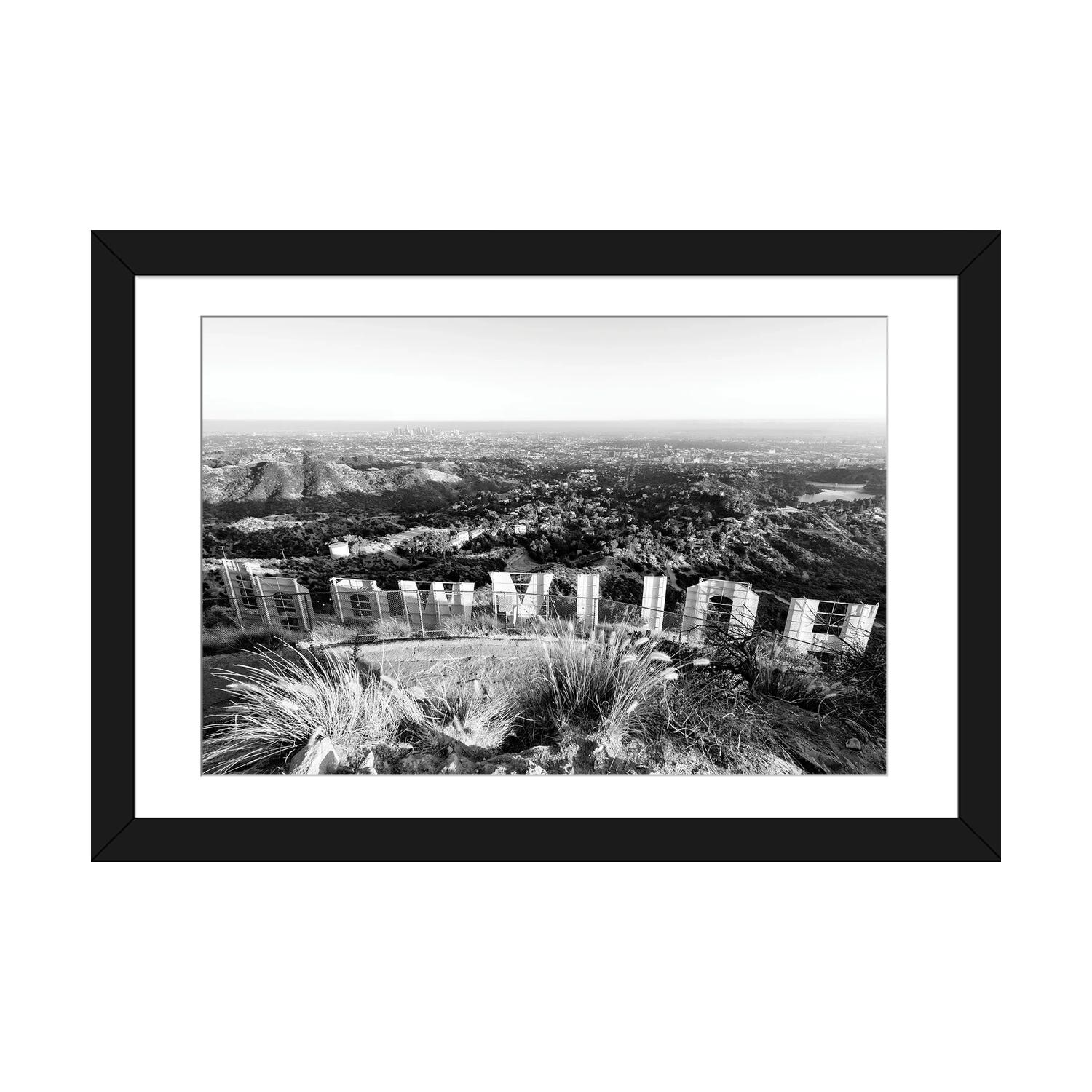 iCanvas "Black California Series - Back Hollywood Sign" by Philippe Hugonnard Framed Canvas Print