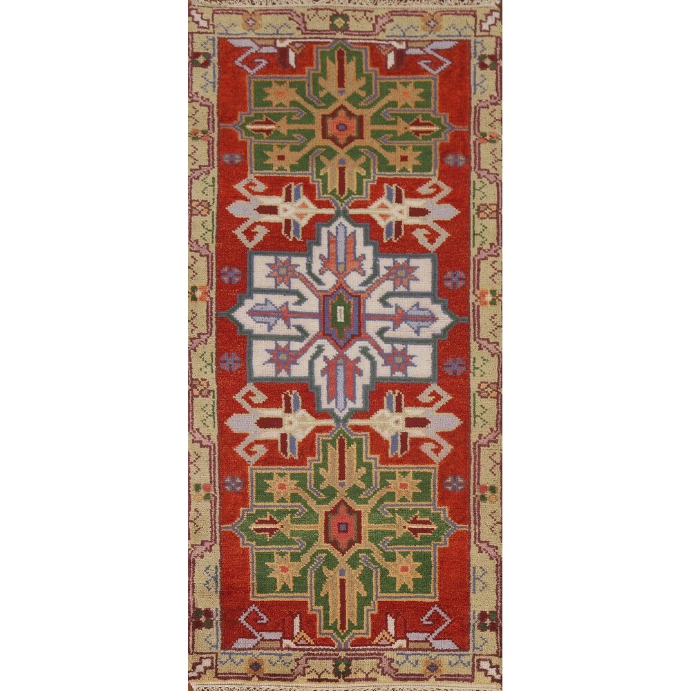 Red Heriz Serapi Indian Accent Rug Hand-Knotted Wool Carpet - 2'8"x 6'2"