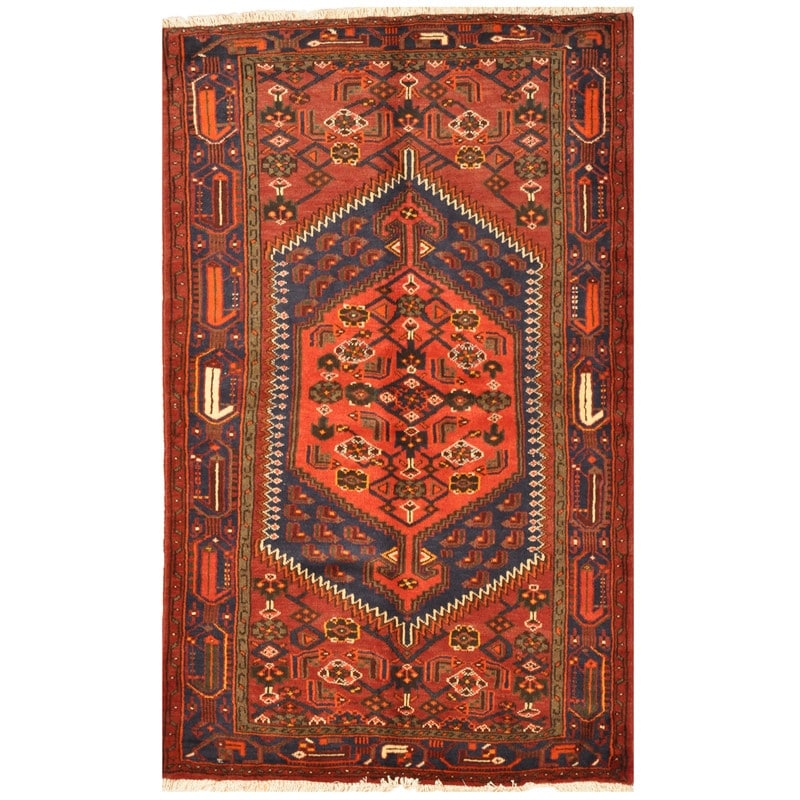 HERAT ORIENTAL Persian Hand-knotted Tribal Geometric Hamadan Wool Rug - 4'1 x 6'5