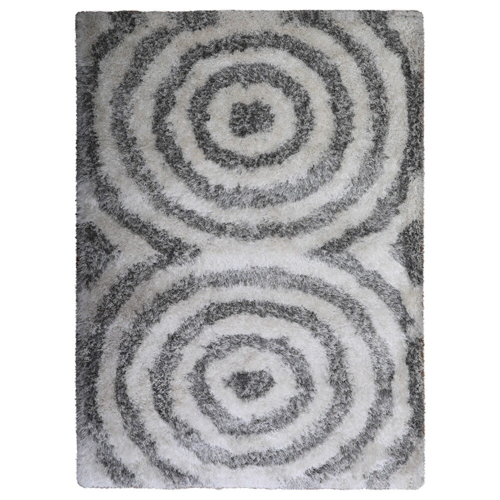 Hand Tufted Shag Polyester 8'x10' Area Rug Geometric Gray White