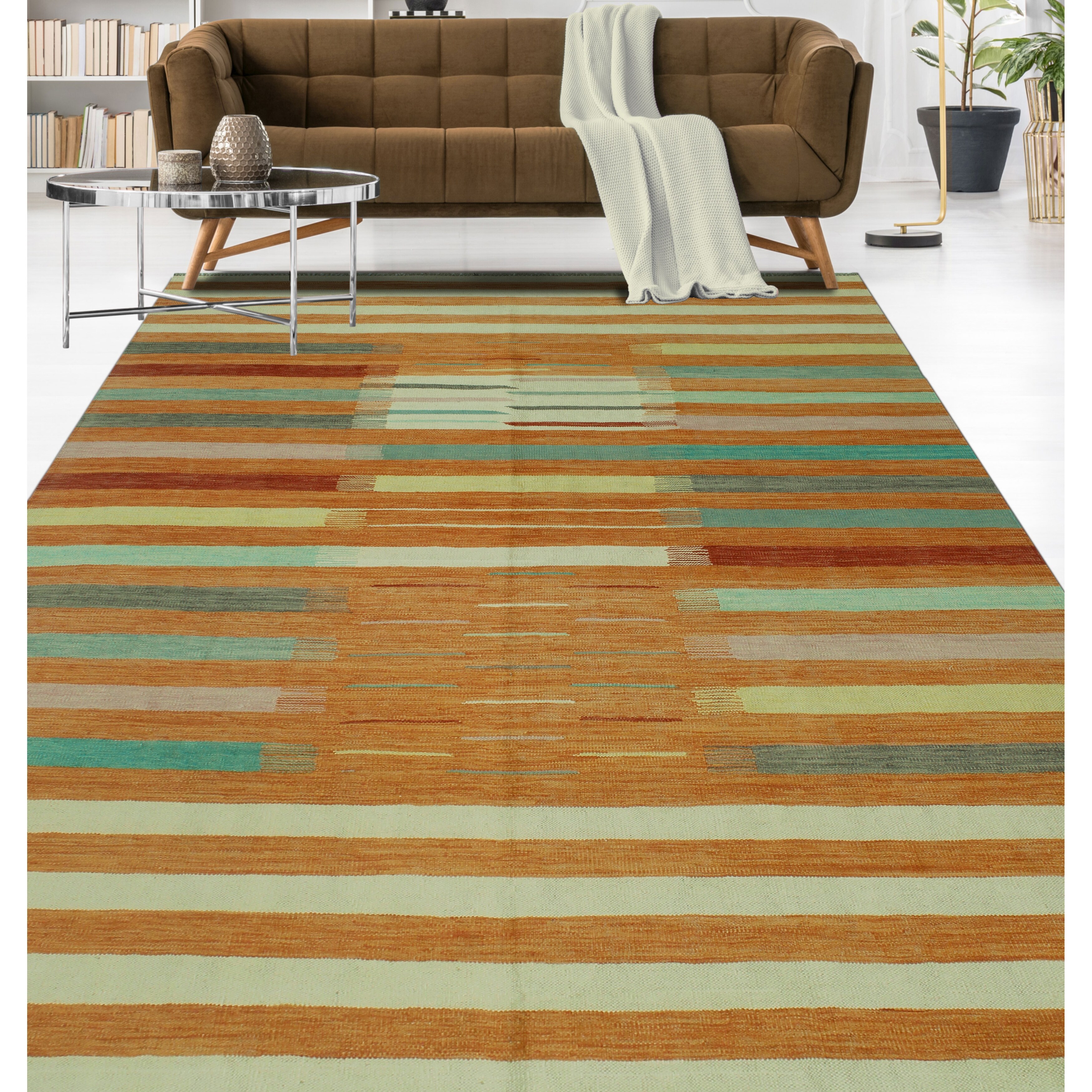 Hand-Woven Winchester Kilim Berna Orange/Ivory Rug - 6'7" x 9'10"