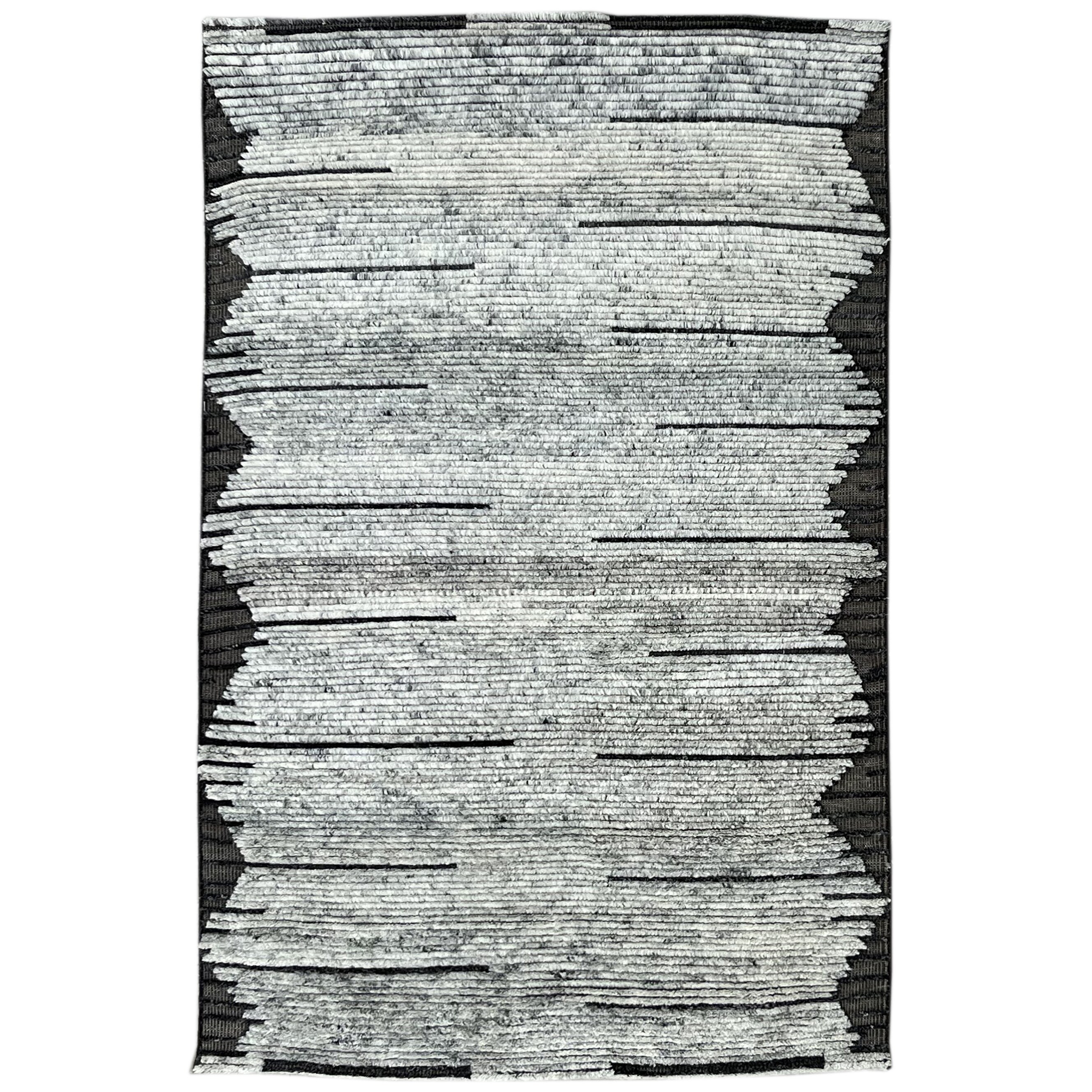 Contemporary Moroccan Home Decor Rug Hand-knotted Wool Carpet - 4'2" x 6'2"