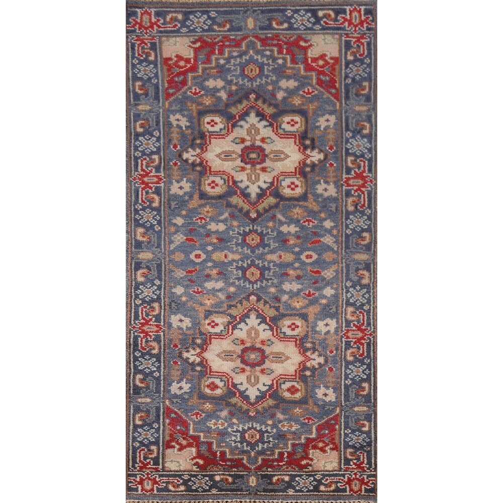 Blue Heriz Serapi Indian Accent Rug Hand-Knotted Wool Carpet - 2'9"x 6'0"