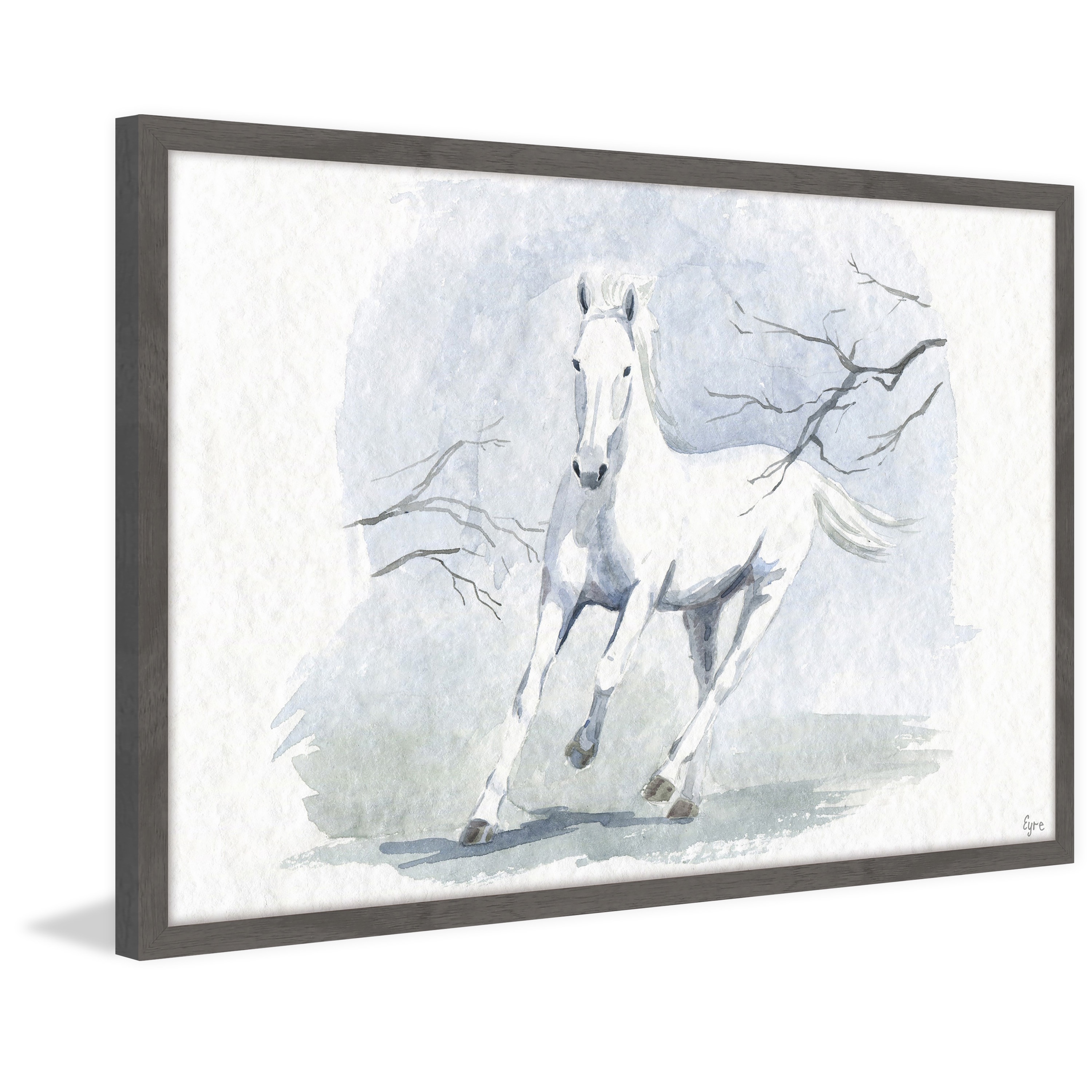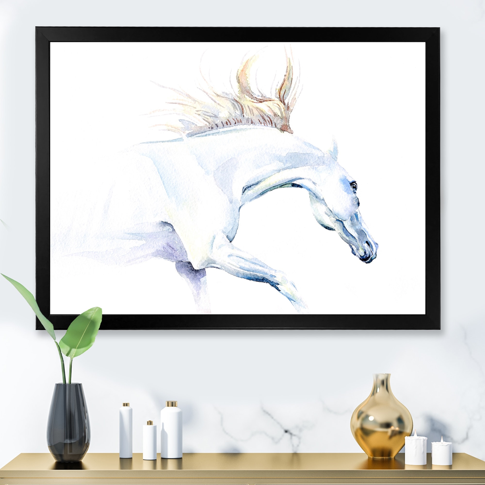Designart "White Horse in Watercolor" Traditional Framed Art Print