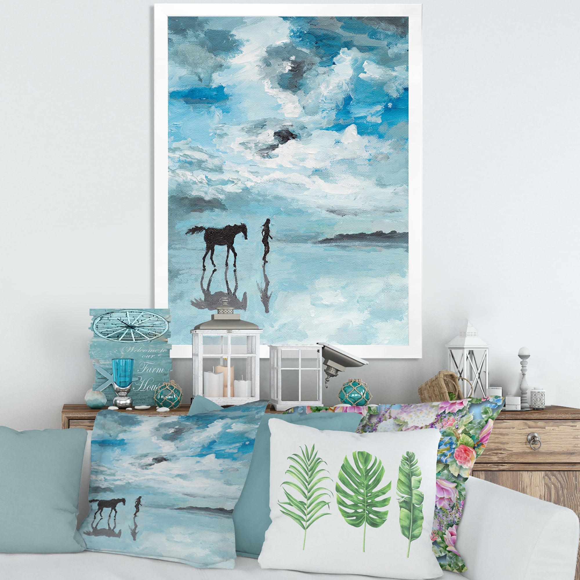 Designart "Peaceful Scene of Man & Horse Running By the Water" Farmhouse Framed Art Print
