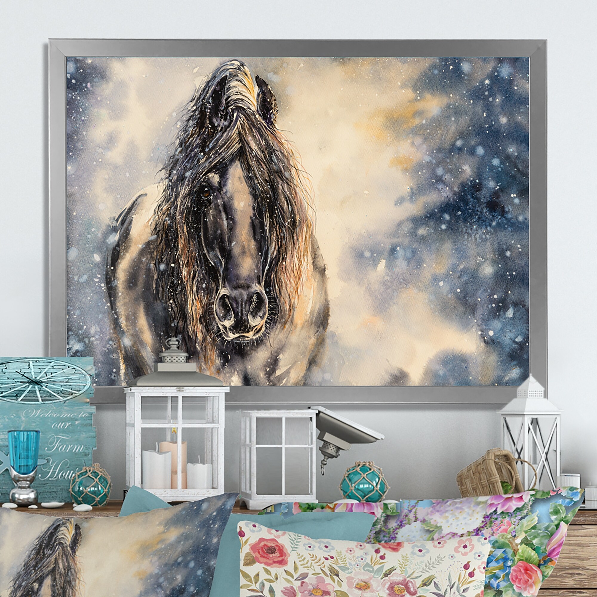 Designart "Portrait Of a Black Horse on A Bleak Winterday" Traditional Framed Wall Decor