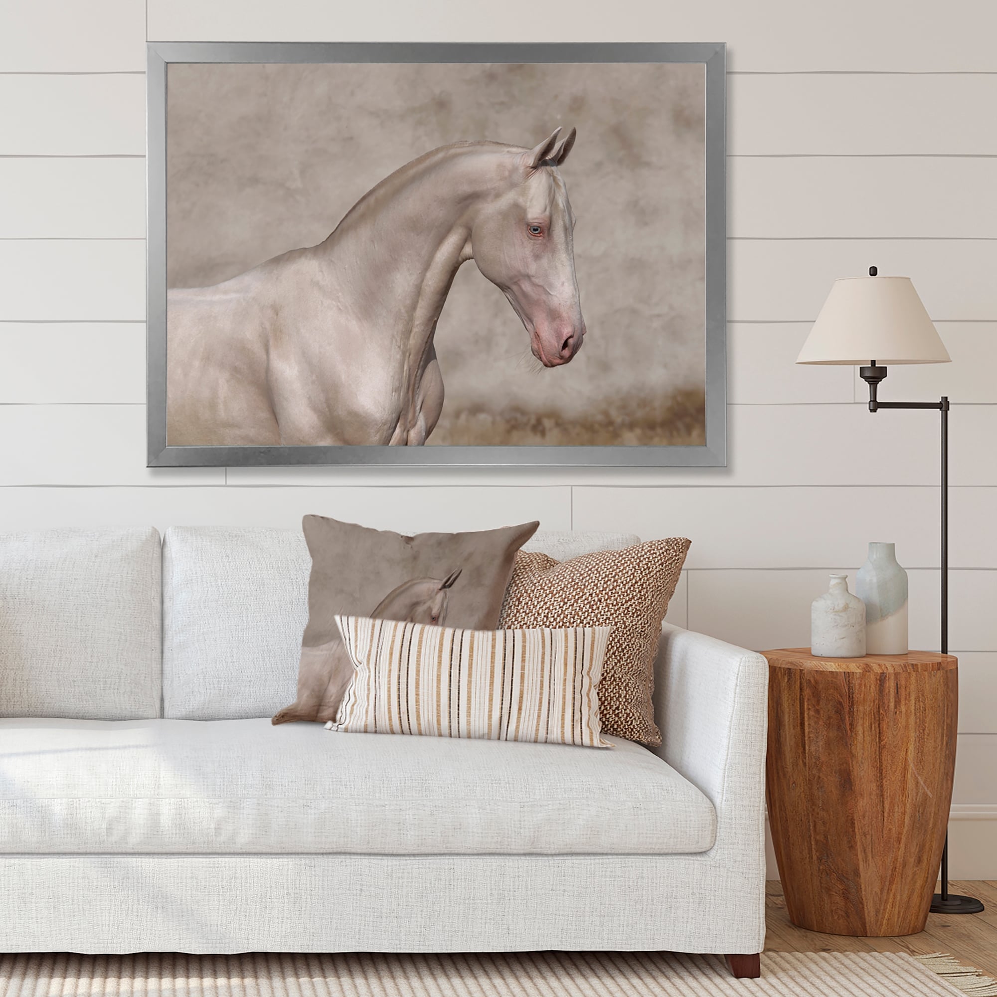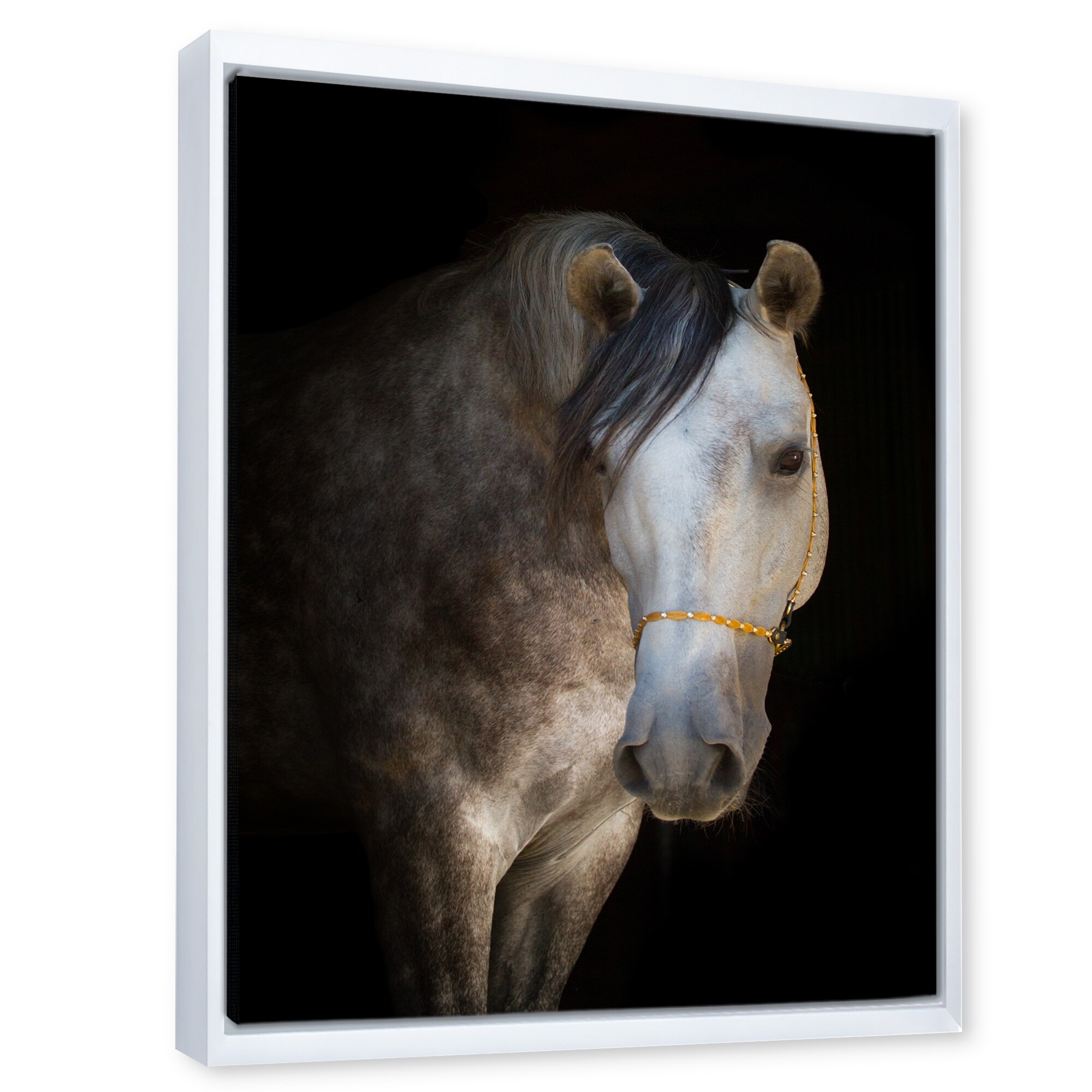 Designart "Portrait of a White Horse" Farmhouse Framed Canvas Wall Art Print