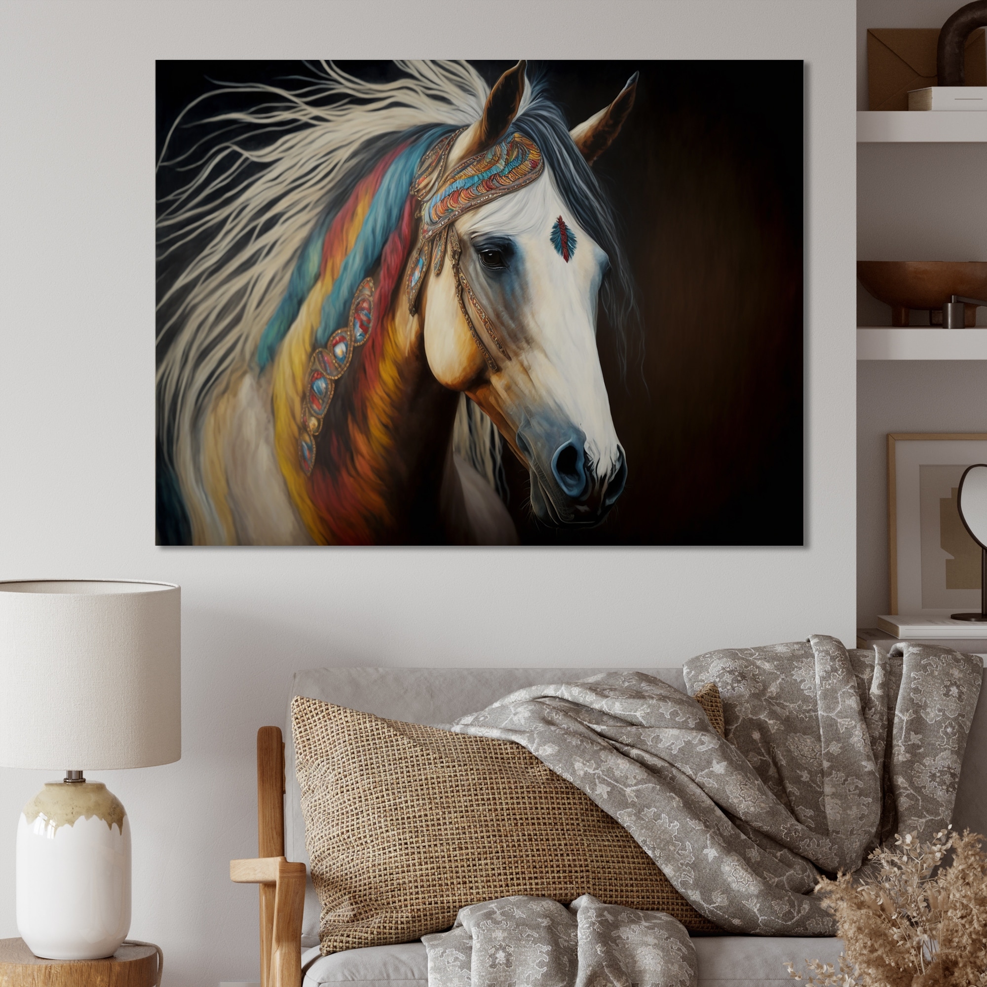 Designart 'Amerindian Horse With Feathers V' Modern Canvas Wall Art