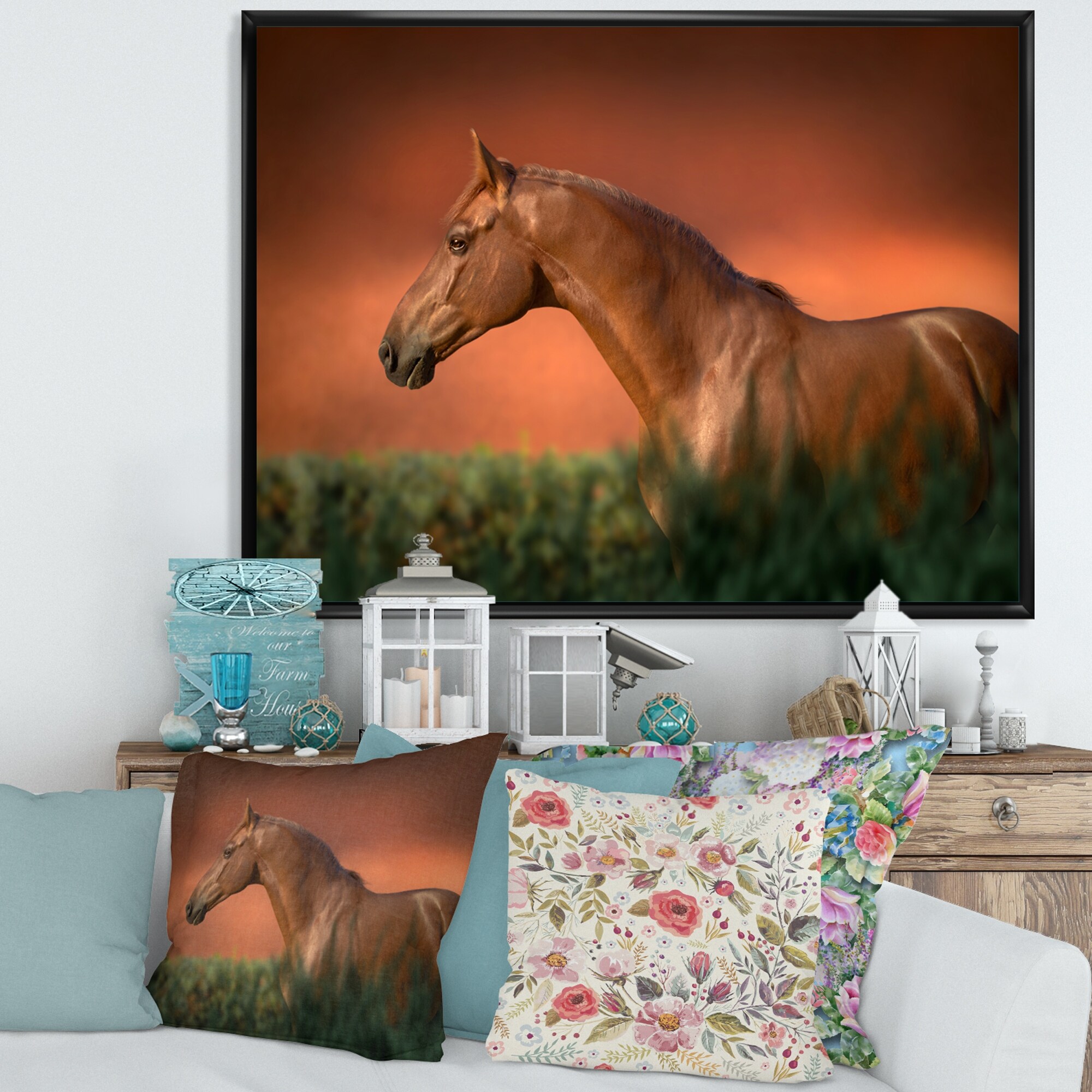Designart "Portrait Of the Chestnut Thoroughbred Horse I" Traditional Framed Canvas Wall Art Print