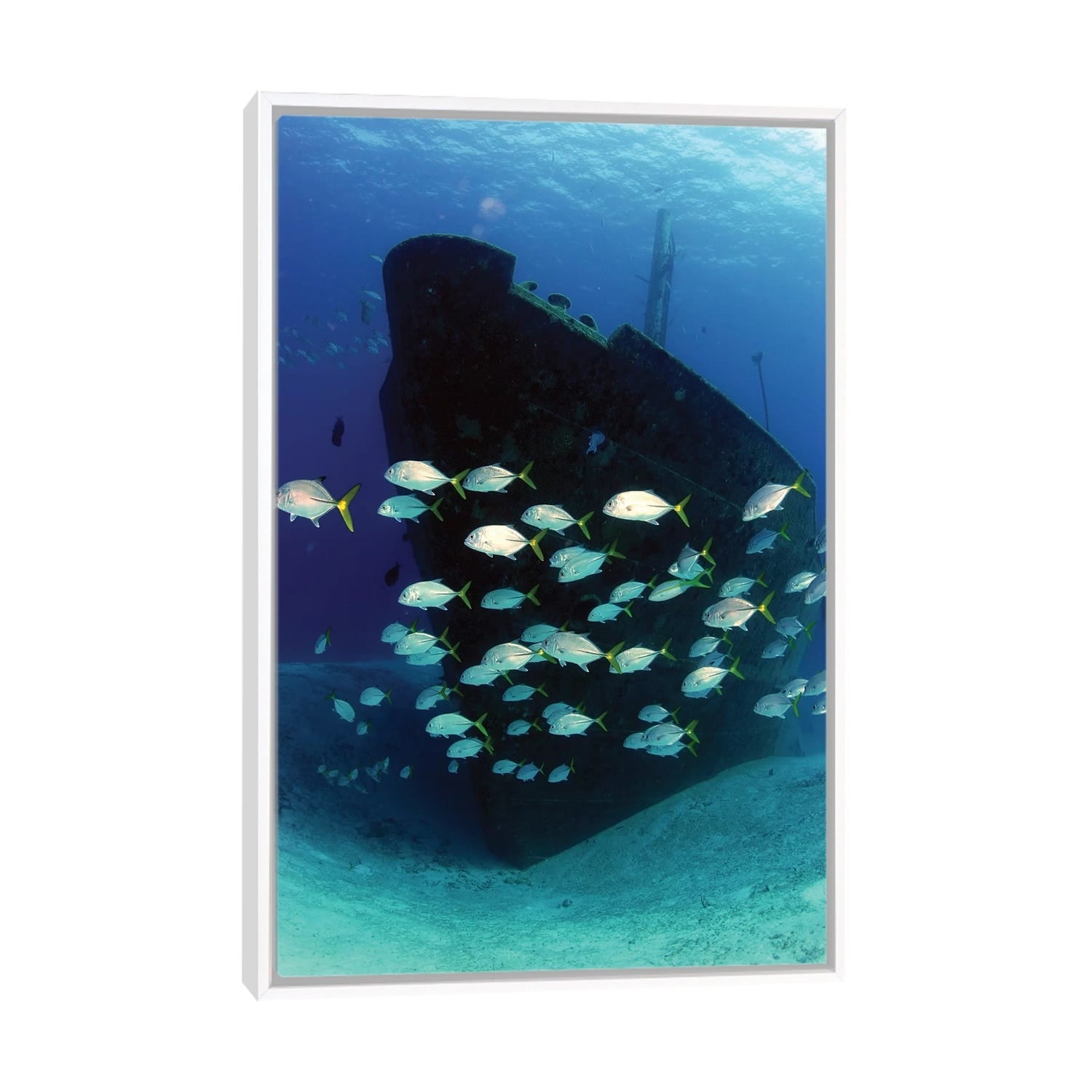 iCanvas "School Of Horse-Eye Jack Fish Swimming By the Ray of Hope Shipwreck" by Amanda Nicholls Framed Canvas Print