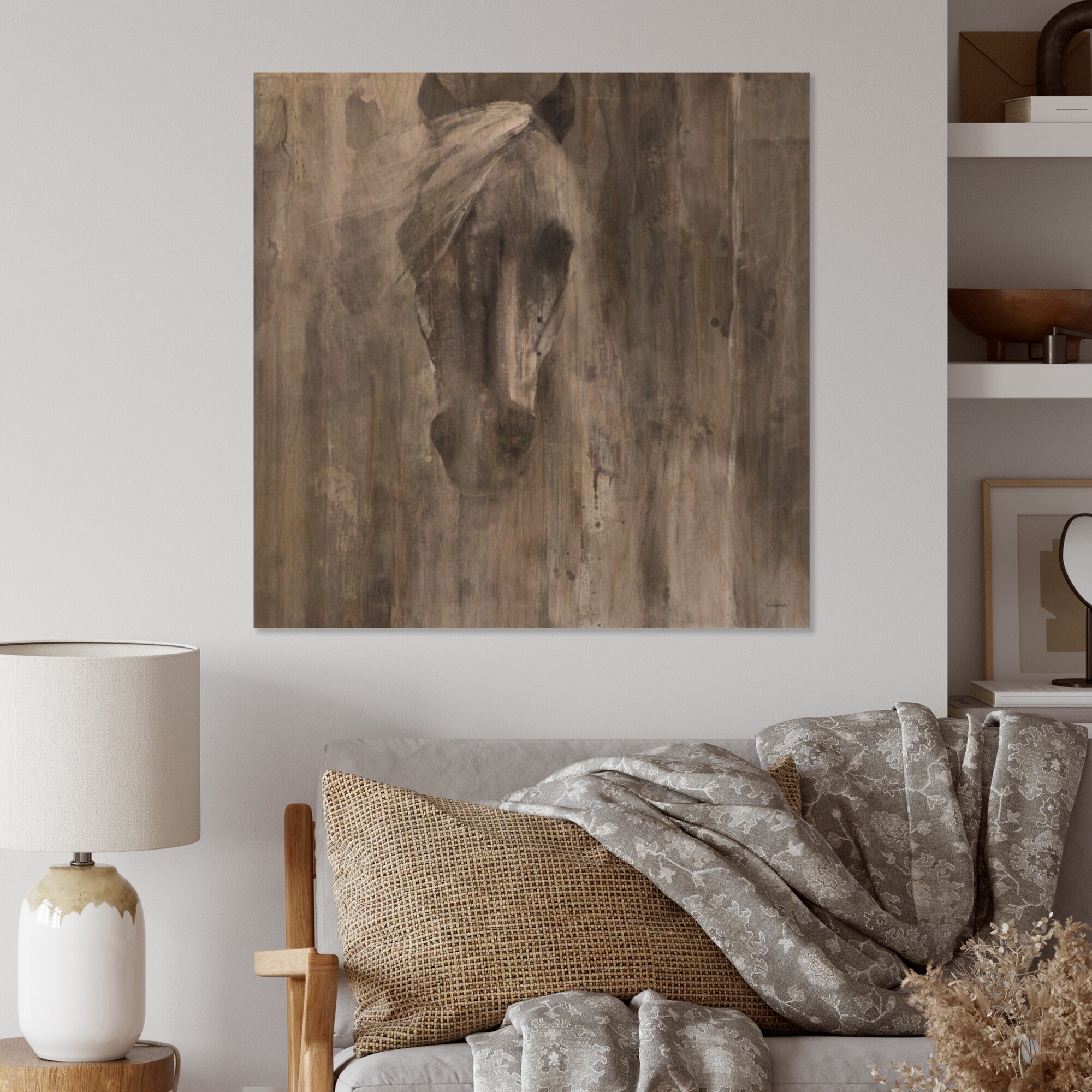 Designart 'Farmhouse Horse' Farmhouse Wood Wall Art - Natural Pine Wood
