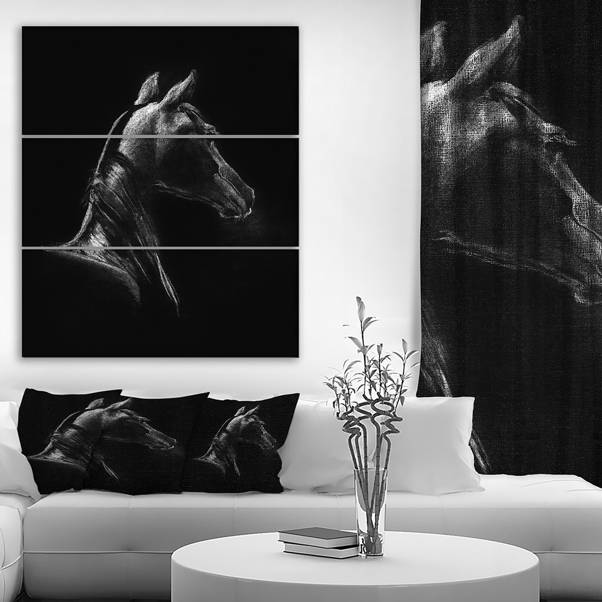 Designart "Horse in Black Background" Farmhouse Animal Print on Wrapped Canvas set