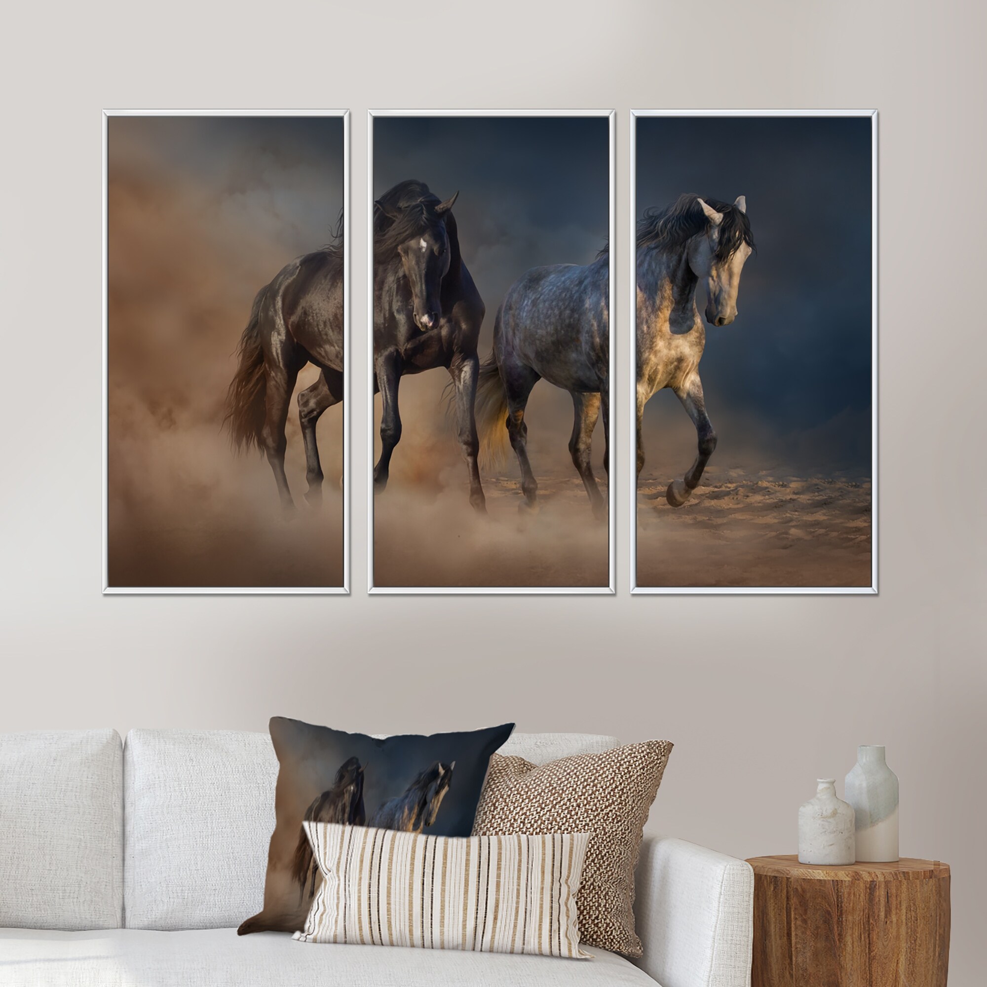 Designart "Black and white horse run" Animal Framed Art Set of 3 - 4 Colors of Frames