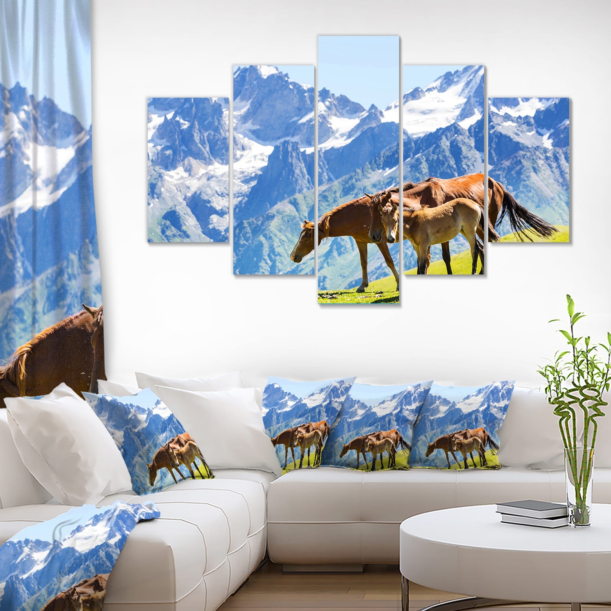 Designart "Horses in Mountains" Animals Photography on Wrapped Canvas set