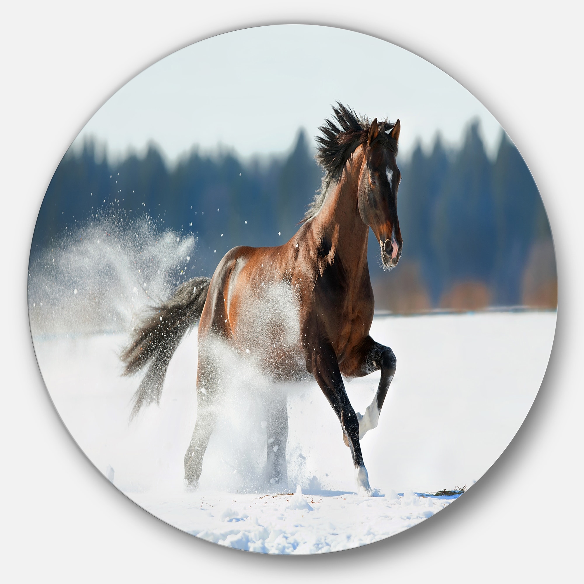 Designart 'Horse Running in Winter' Landscape Photo Round Wall Art