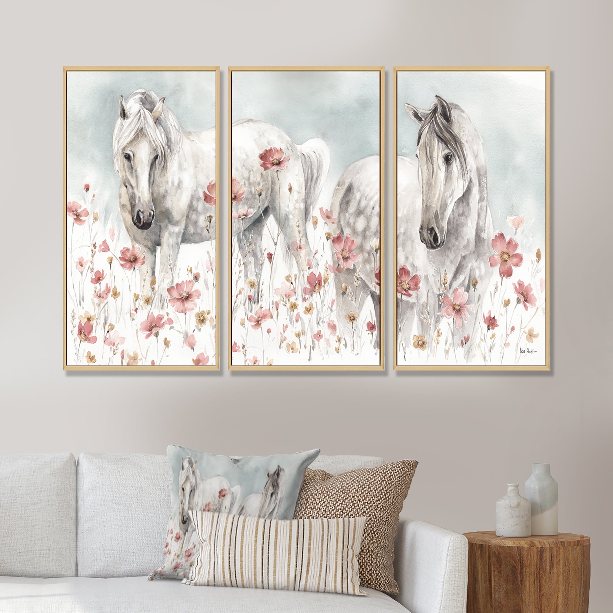 Designart "watercolors Pink Wild Horses" Traditional Framed Wall Decor Set of 3 - 4 Colors of Frames