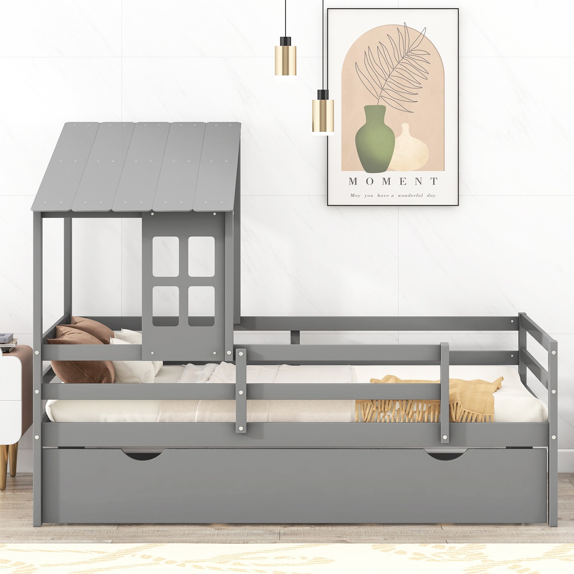 Twin Storage House Bed for kids with Bedside Table, Trundle