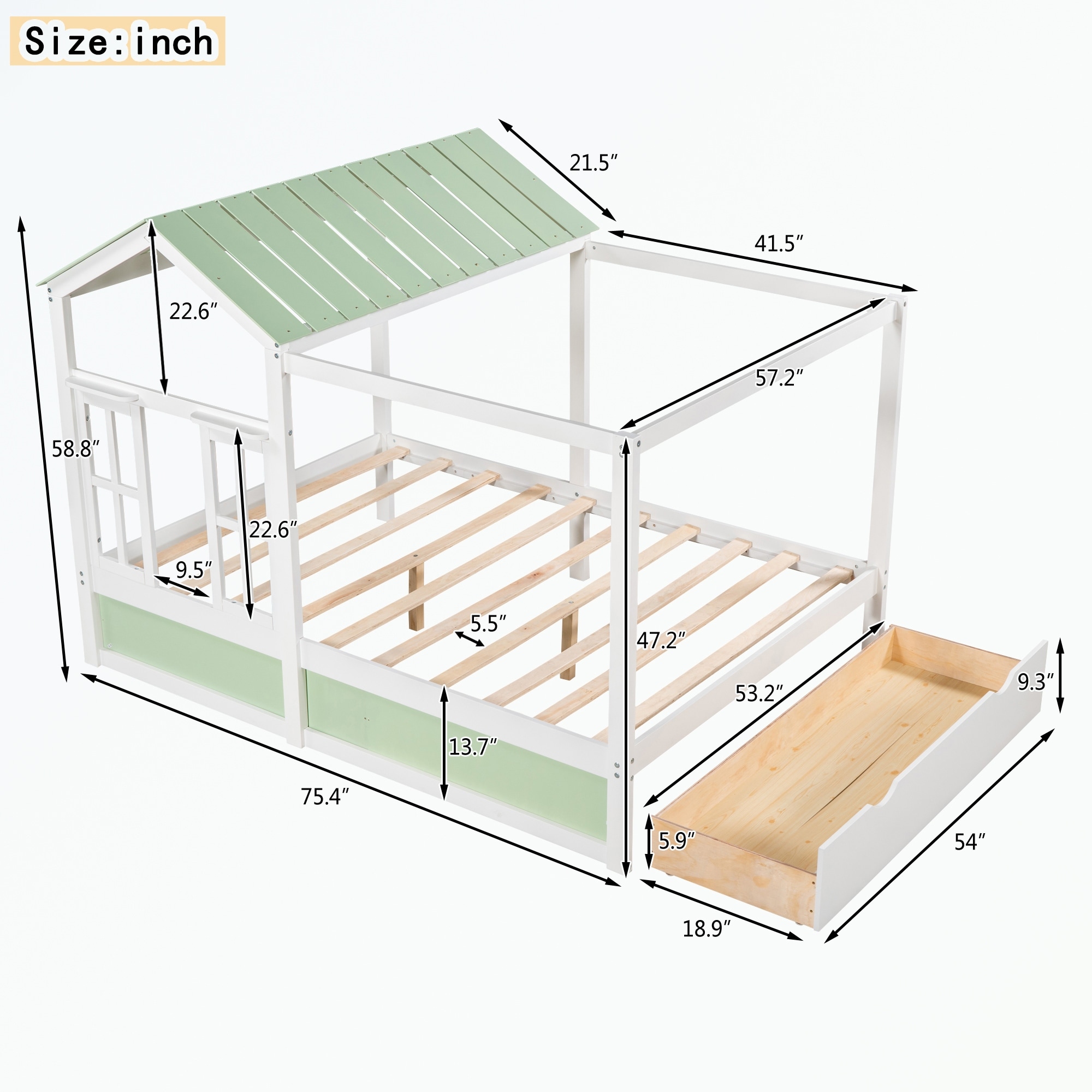 Full Size House Bed with Roof, Window and Drawer