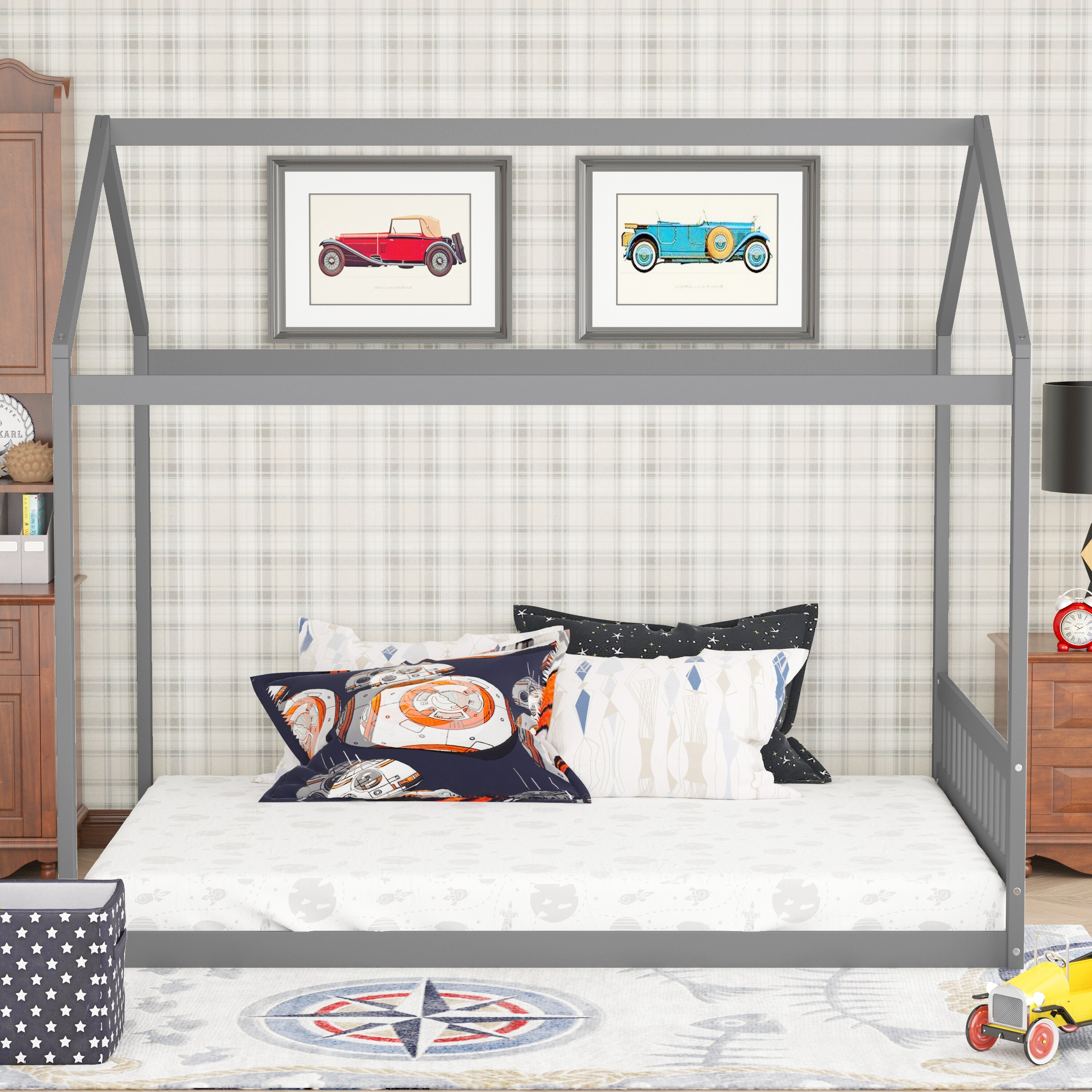 Full Size House Bed Wood Platform Bed