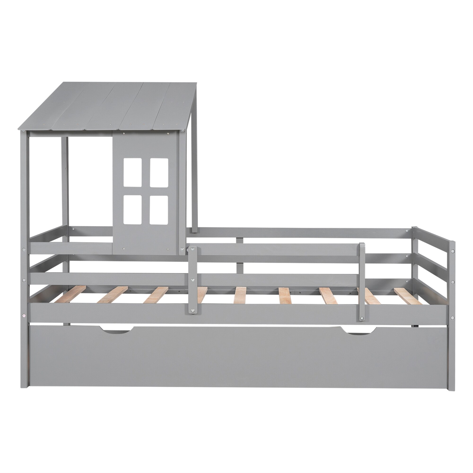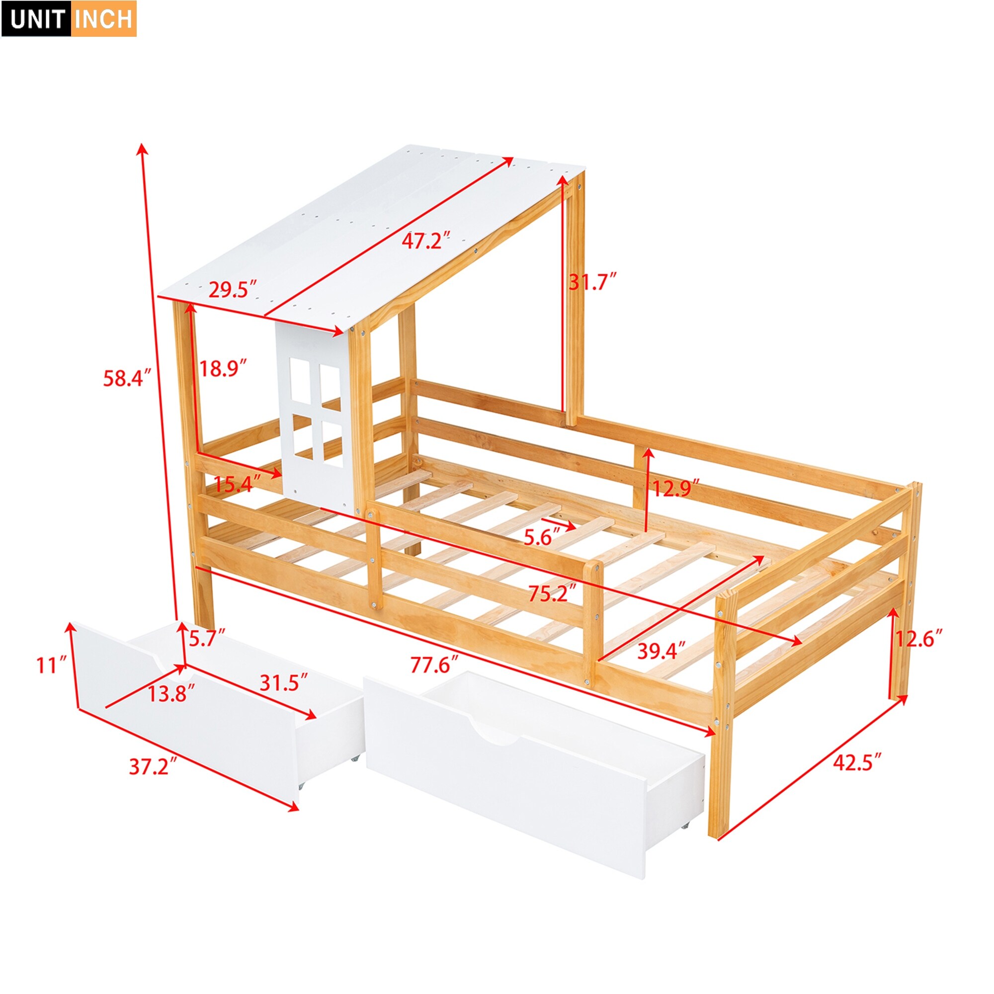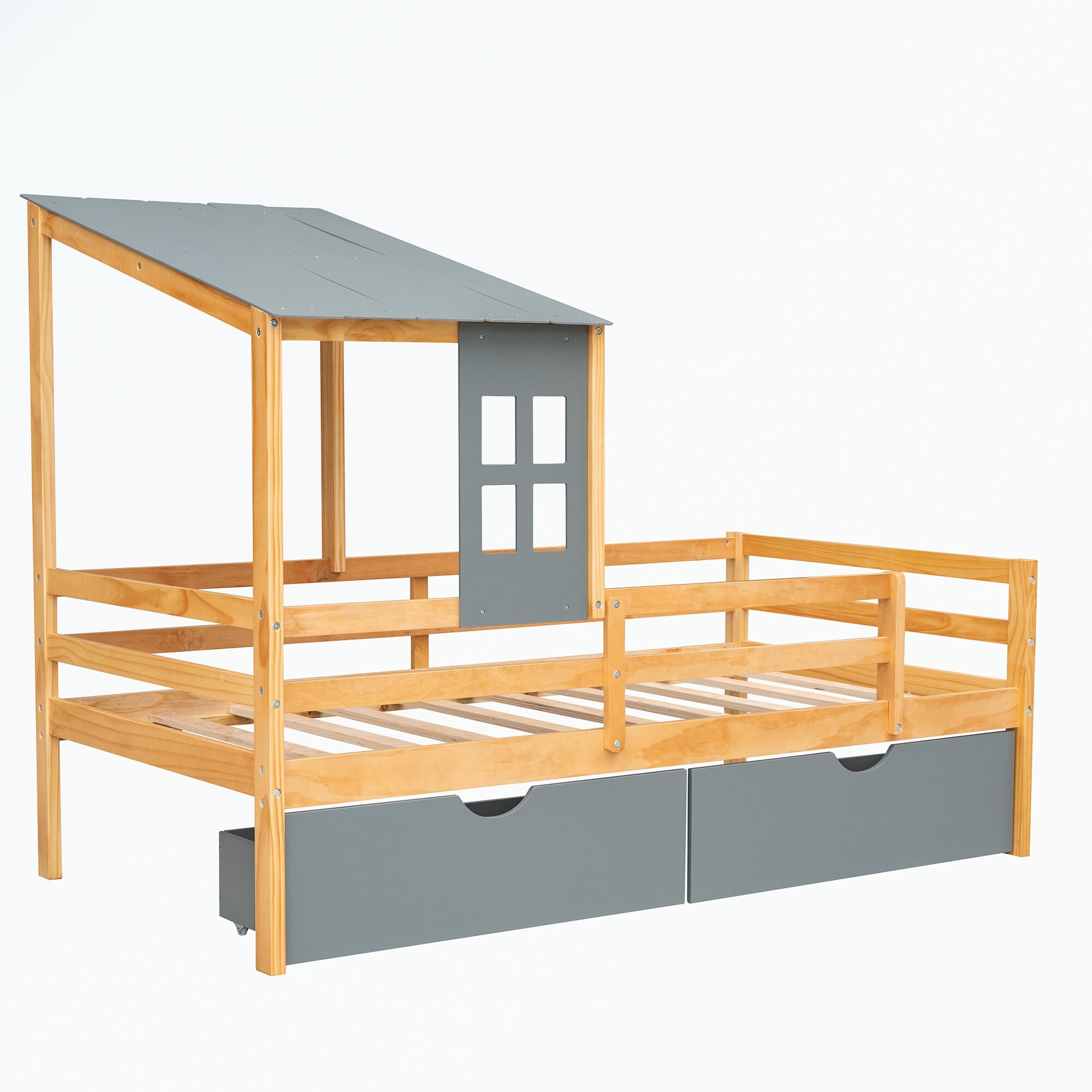 Twin Size House Bed with Roof, Window and Drawer