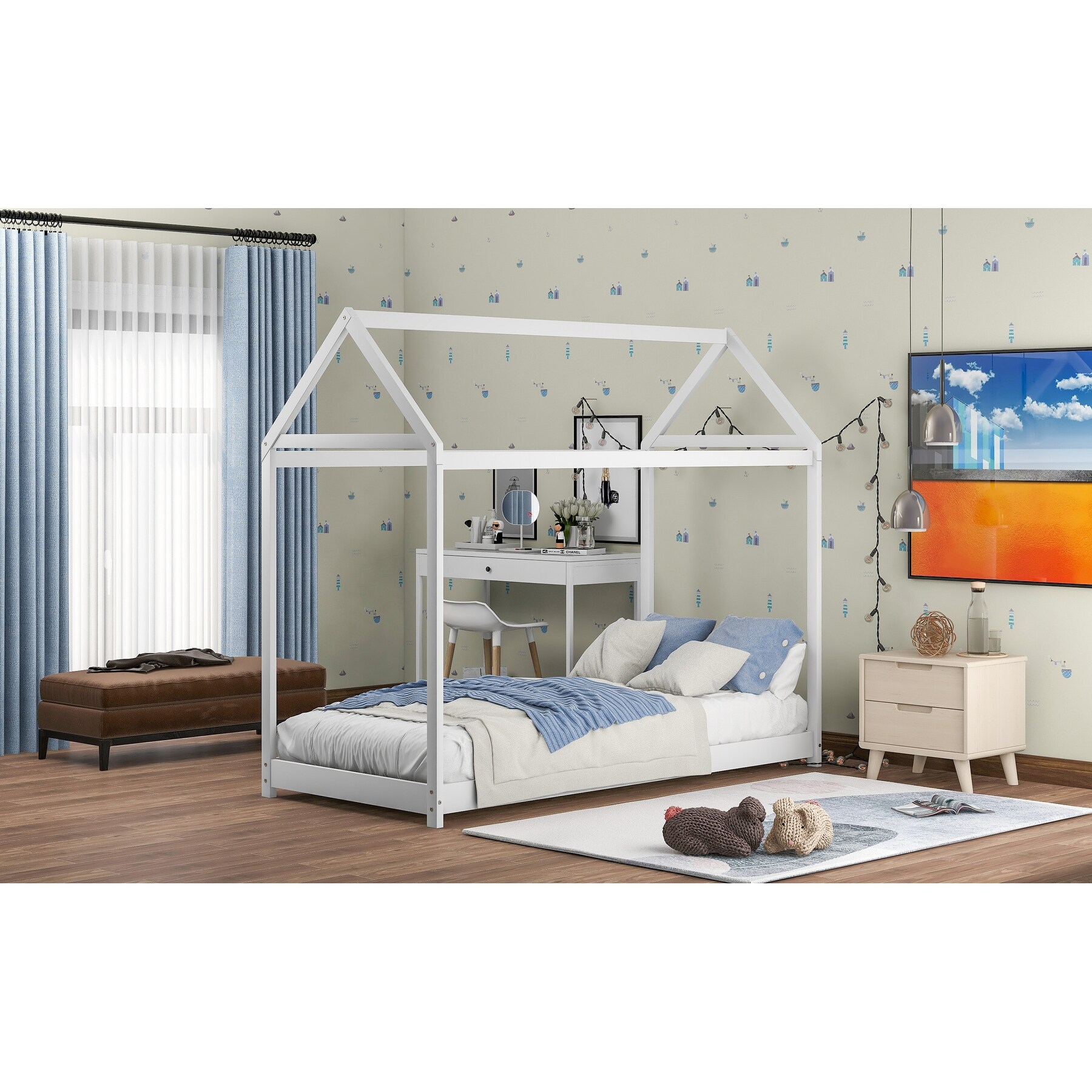 Whimsical Twin House Bed with Roof and Window