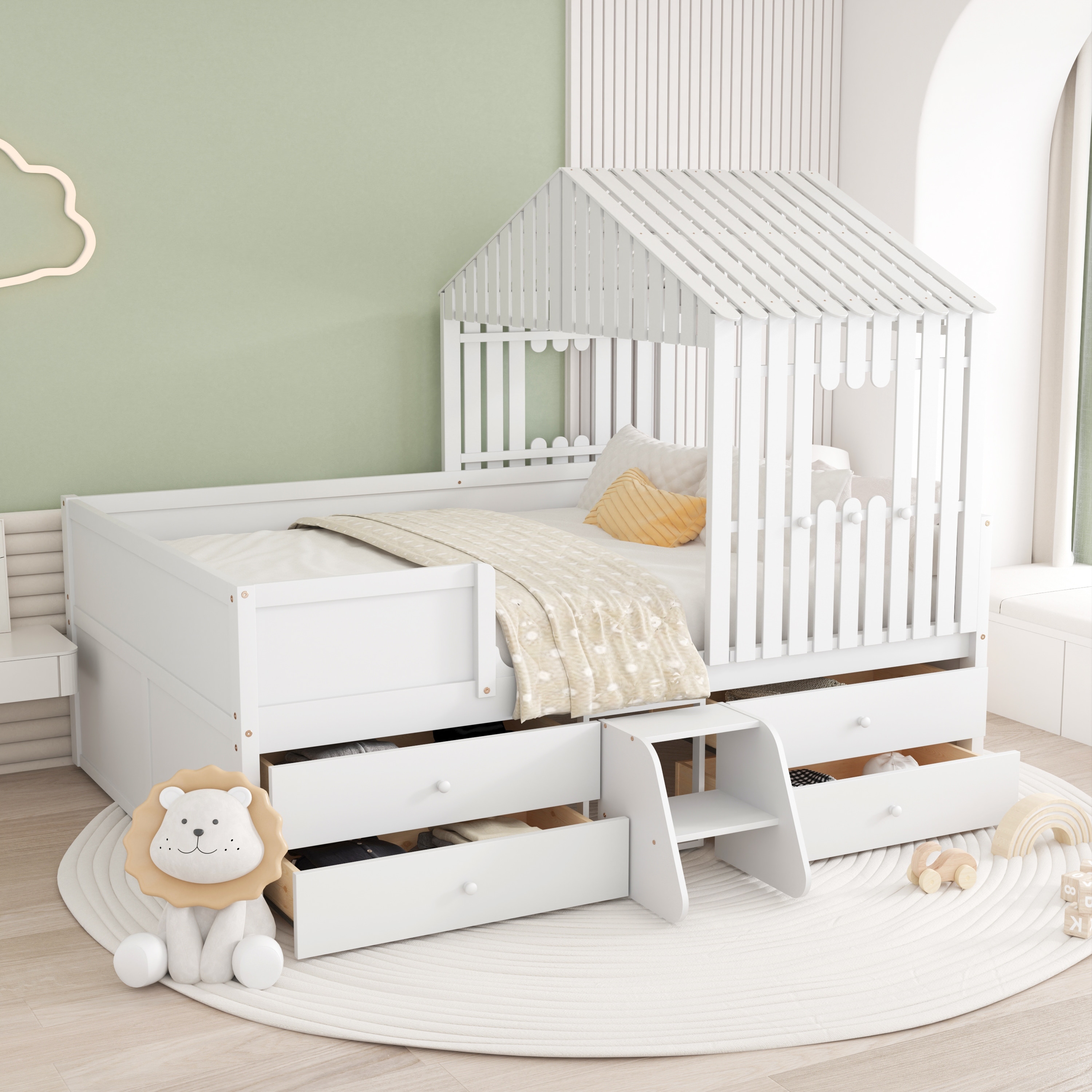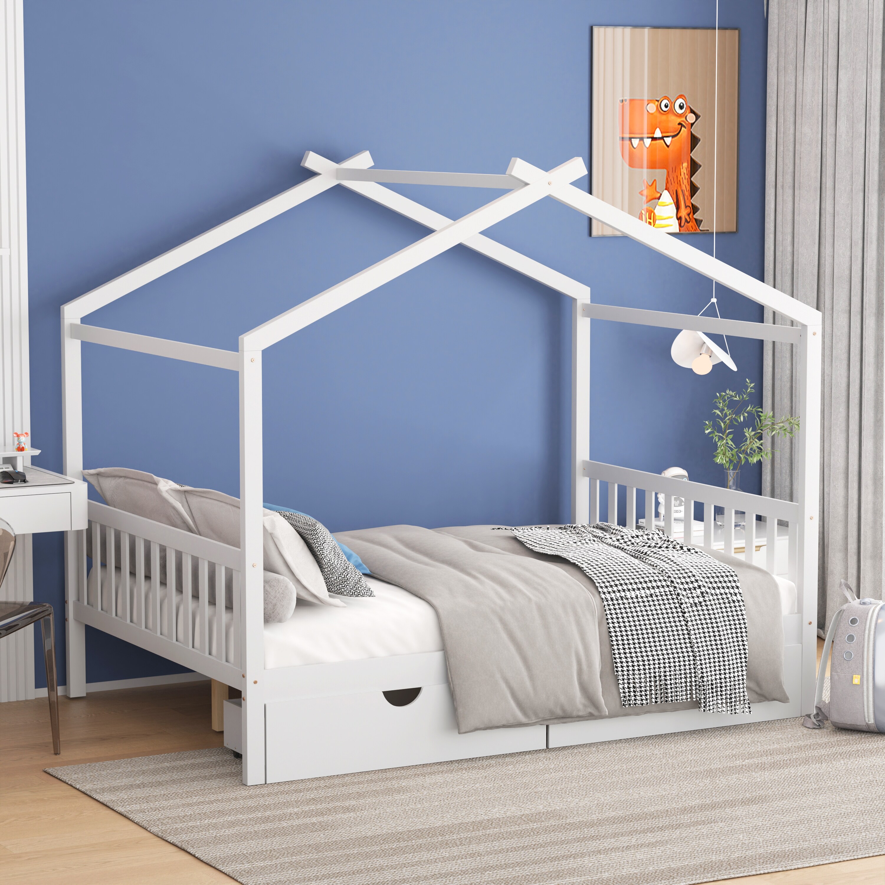 Twin Size House Bed with drawers