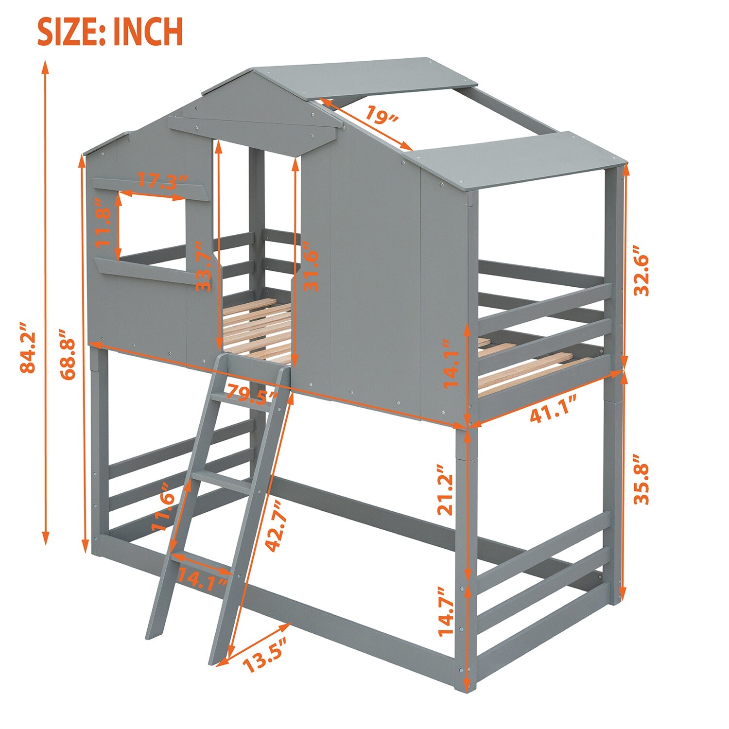 Twin Size Bunk House Bed with Slide and Ladder