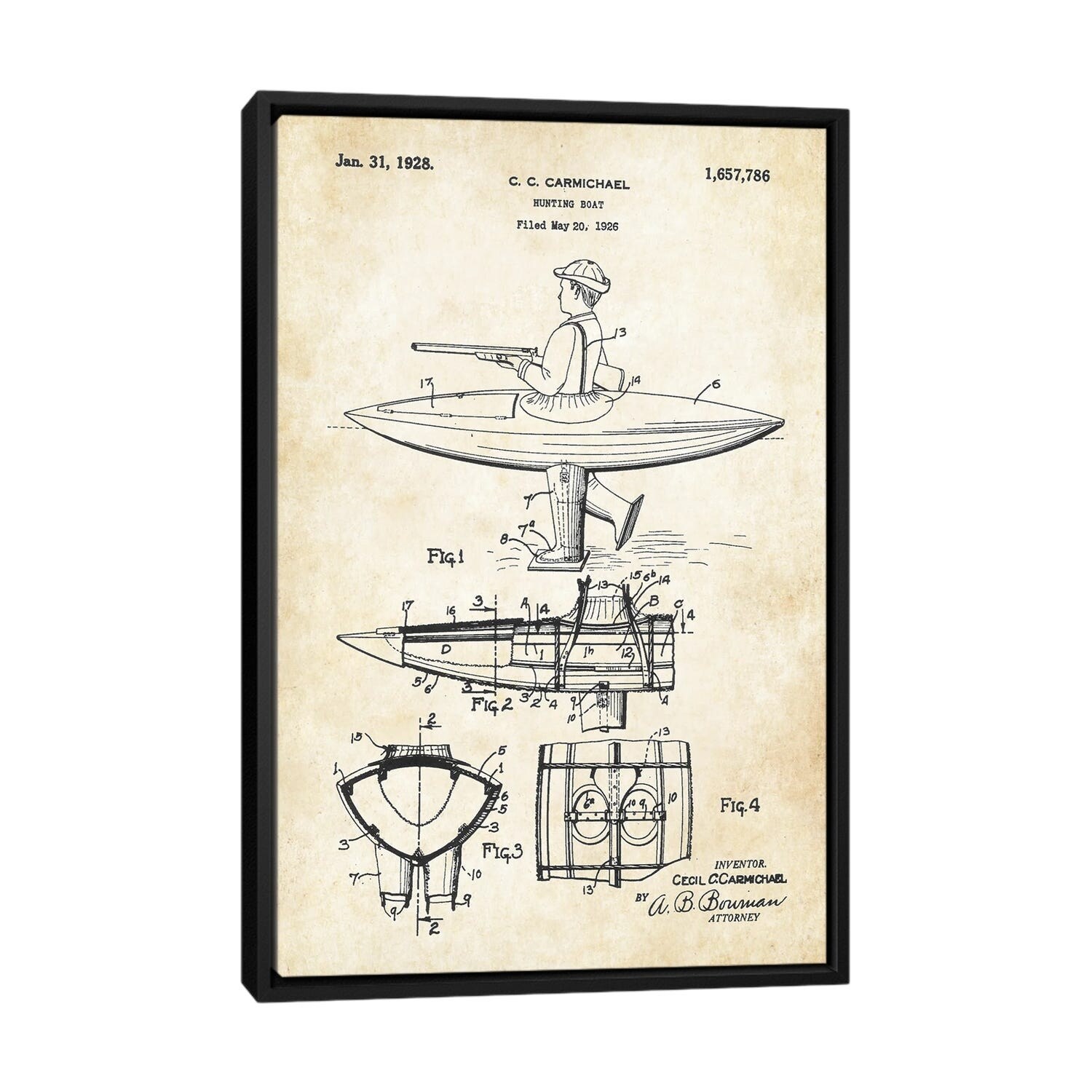 iCanvas "Hunting Boat" by Patent77 Framed|White - 40x26
