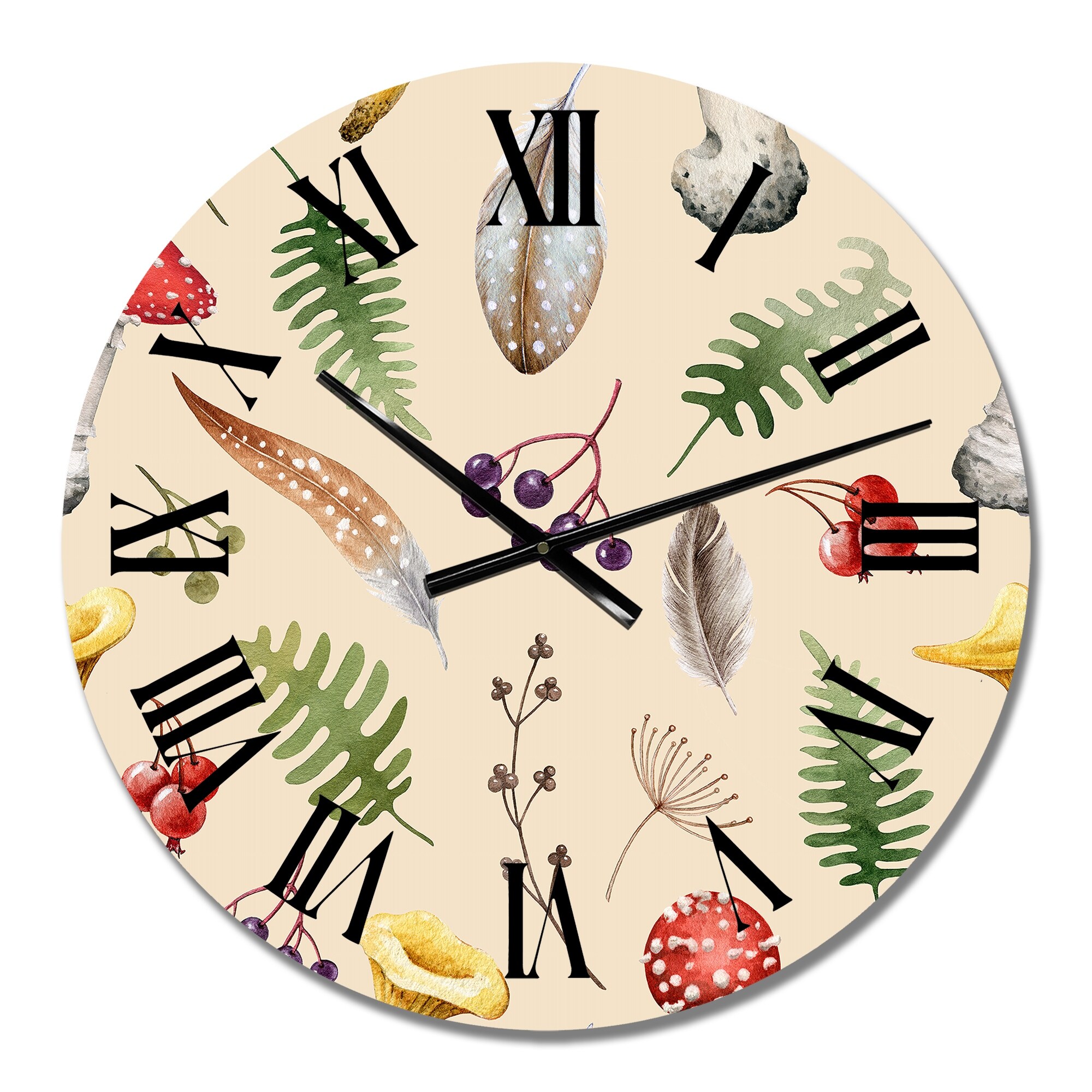 Designart 'Wild Forest Herbs And Mushroom on Beige' Patterned wall clock