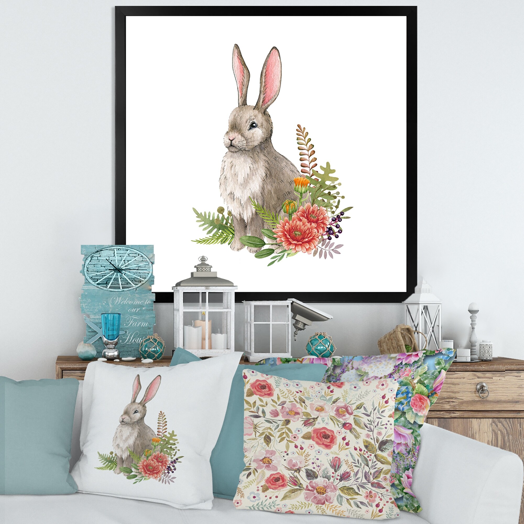 Designart "Bunny With Flowers And Meadow Herbs" Traditional Framed Art Print