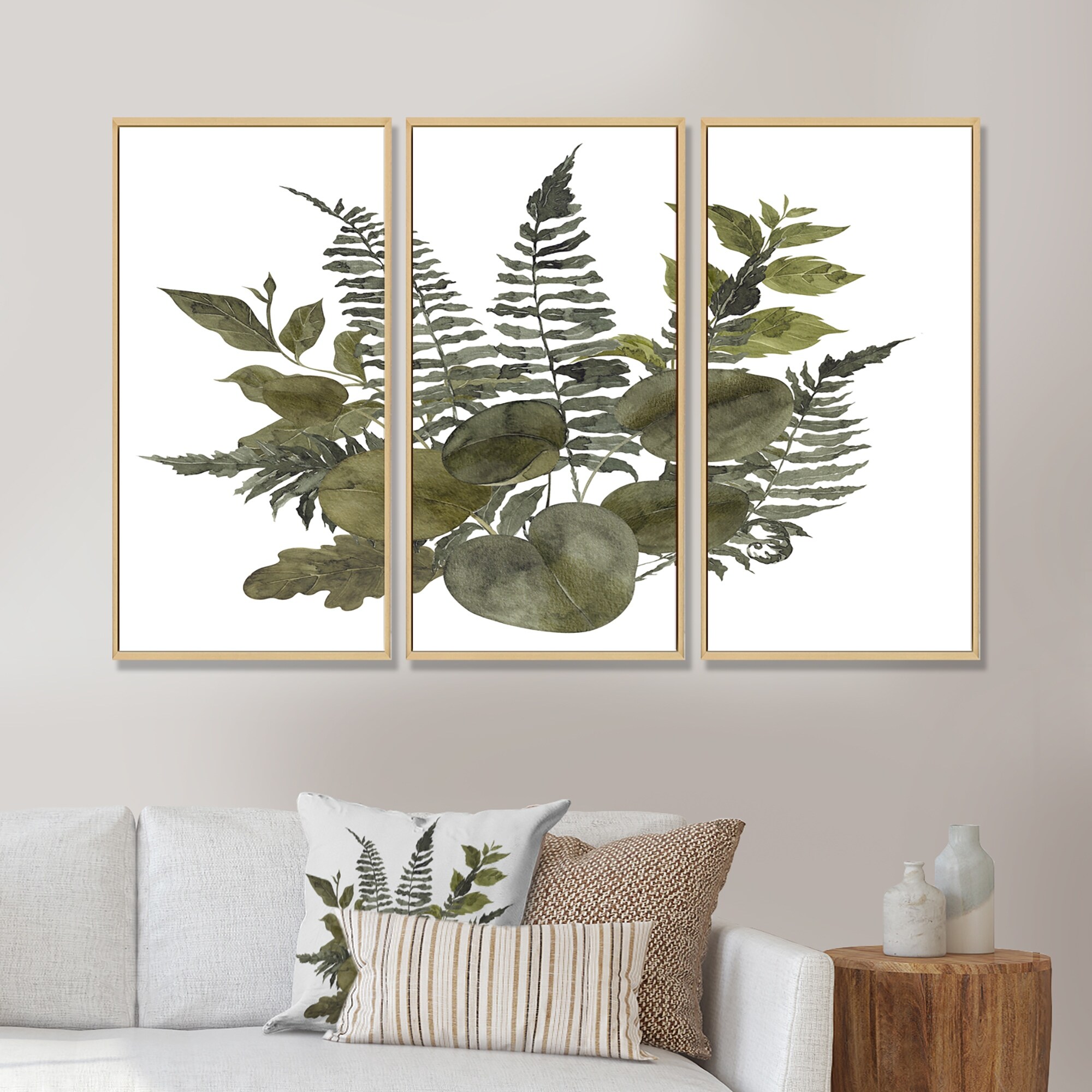 Designart "Wild Forest Herbs And Mushrooms" Patterned Framed Art Set of 3 - 4 Colors of Frames