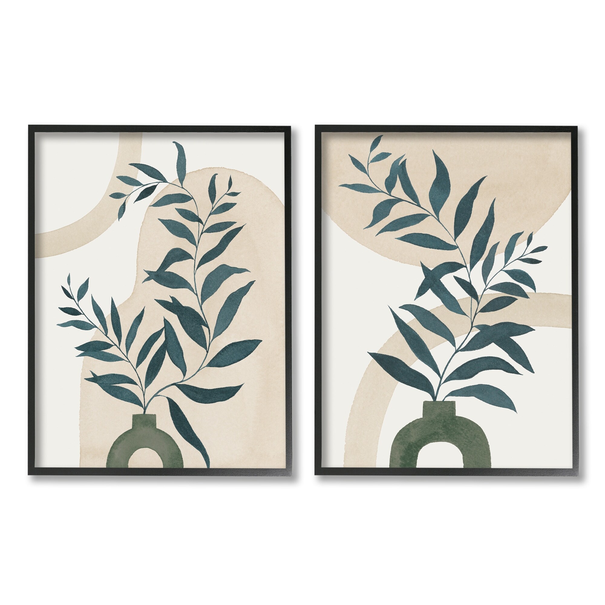 Stupell Nordic Herb Vase Shapes 2 Piece Set Framed Giclee Texturized Wall Art, Design By Grace Popp