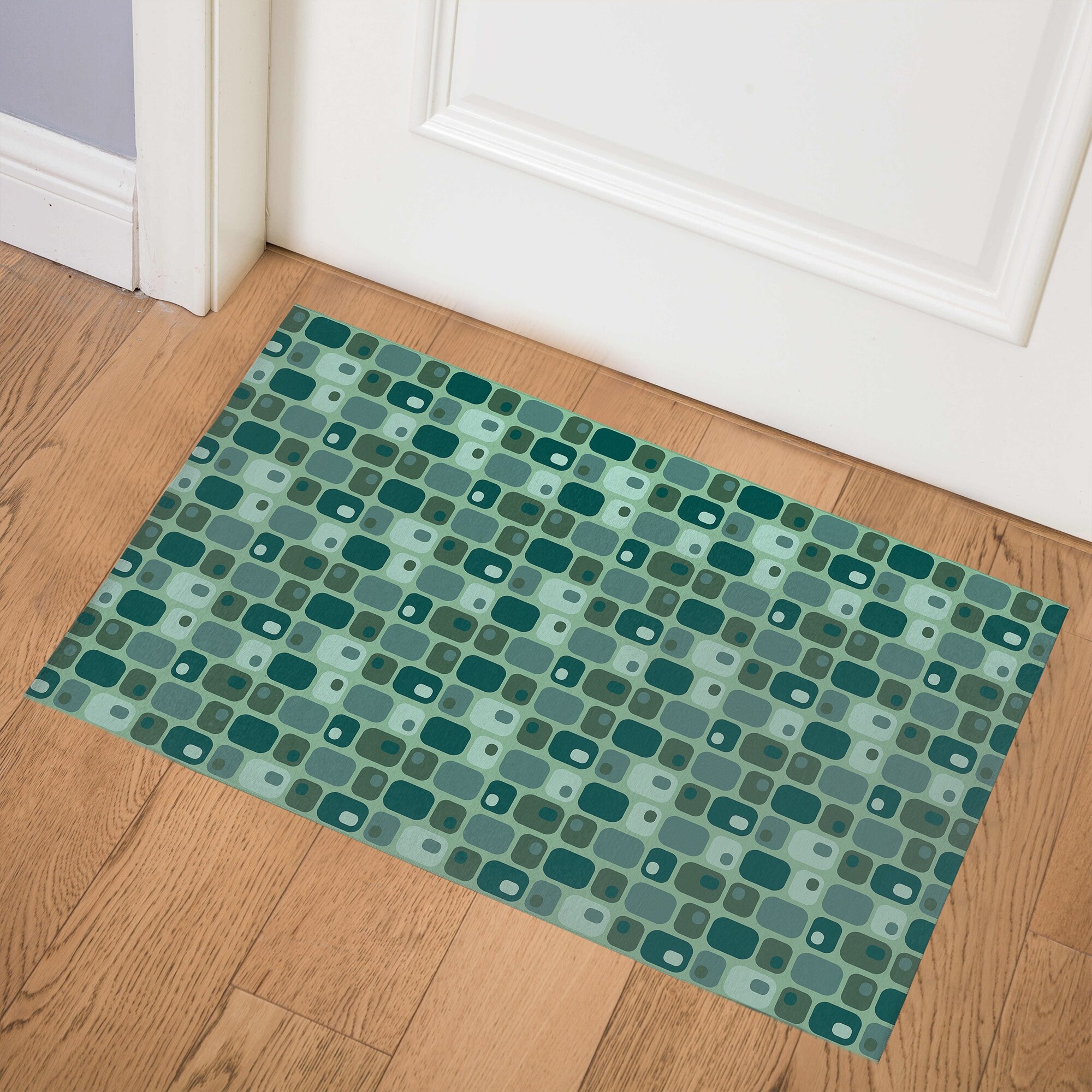 ROUNDED RECTANGLES LIGHT GREEN Indoor Floor Mat By Becky Bailey
