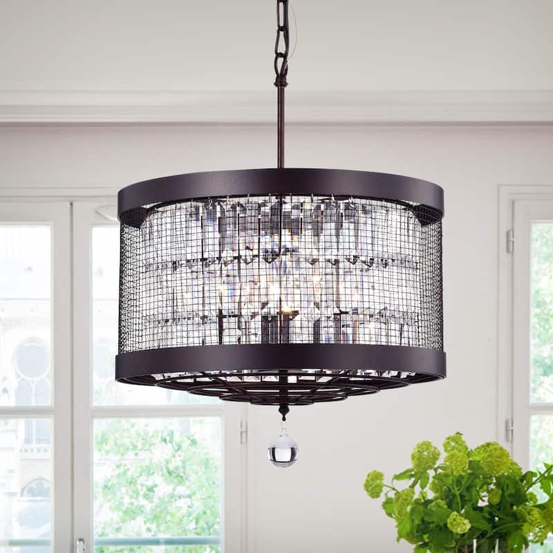 Hawkins Rustic Iron Crystal Mesh 4-light Pendant